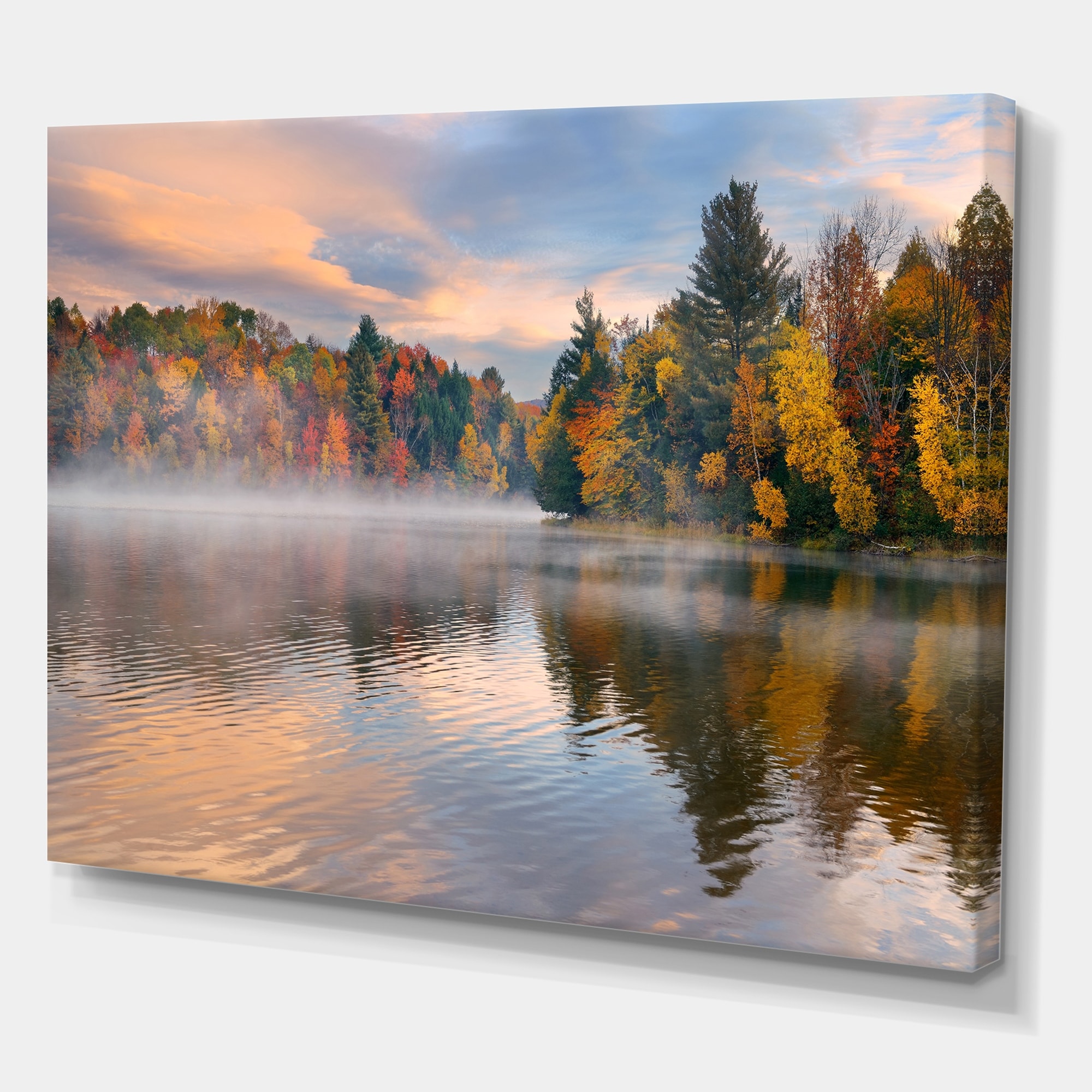 Designart "Autumn Foliage By the Lakeside" Traditional Canvas Wall Art Print