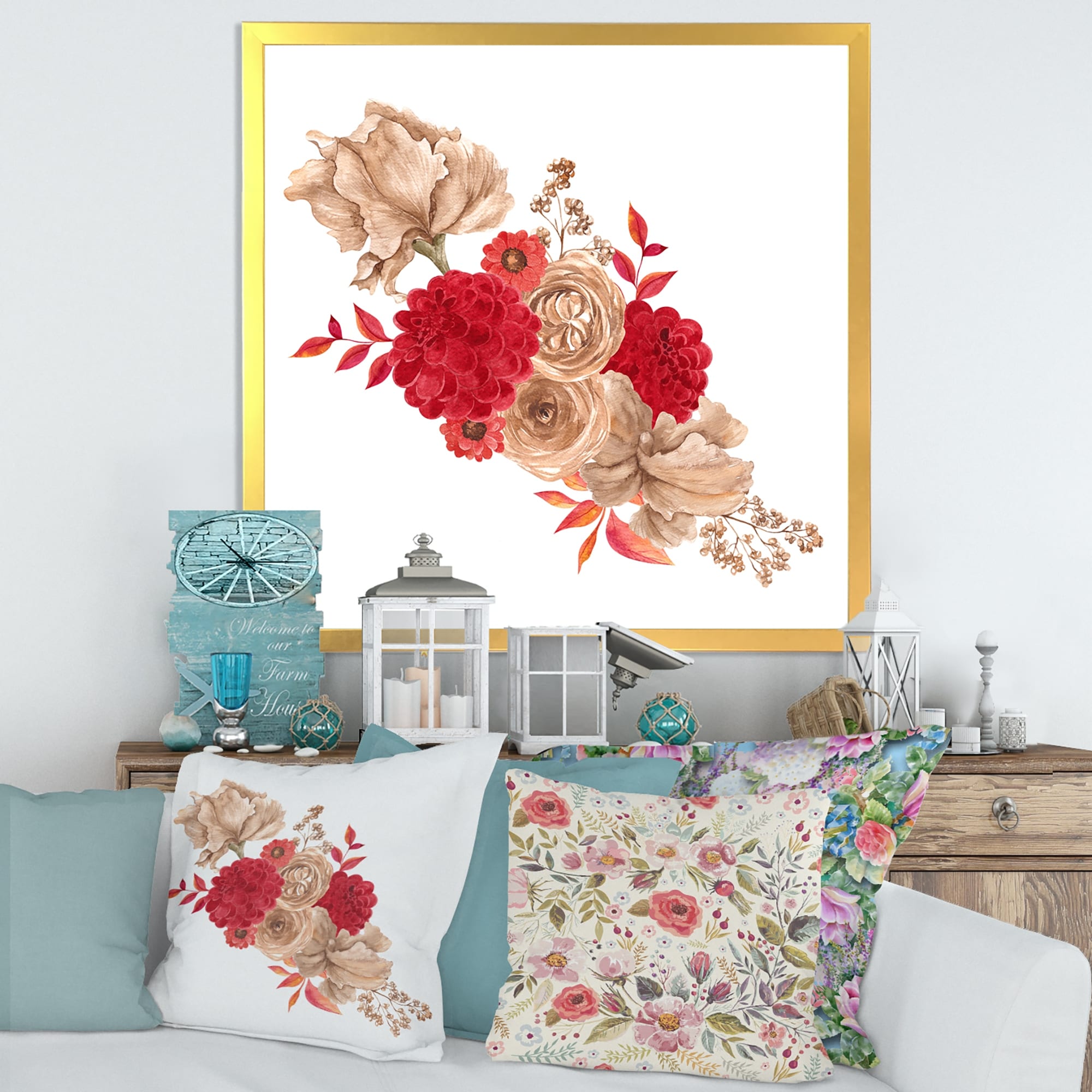 Designart "Autumn Bouquet of Fall Flowers And Leaves II" Traditional Framed Art Print