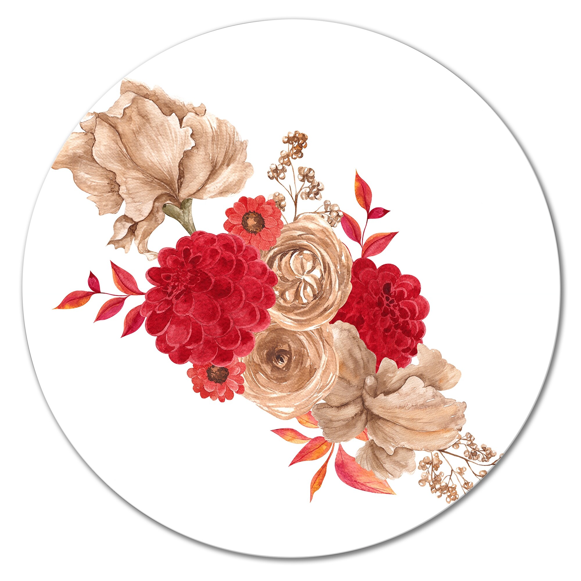 Designart 'Autumn Bouquet of Fall Flowers And Leaves II' Traditional Metal Circle Wall Art
