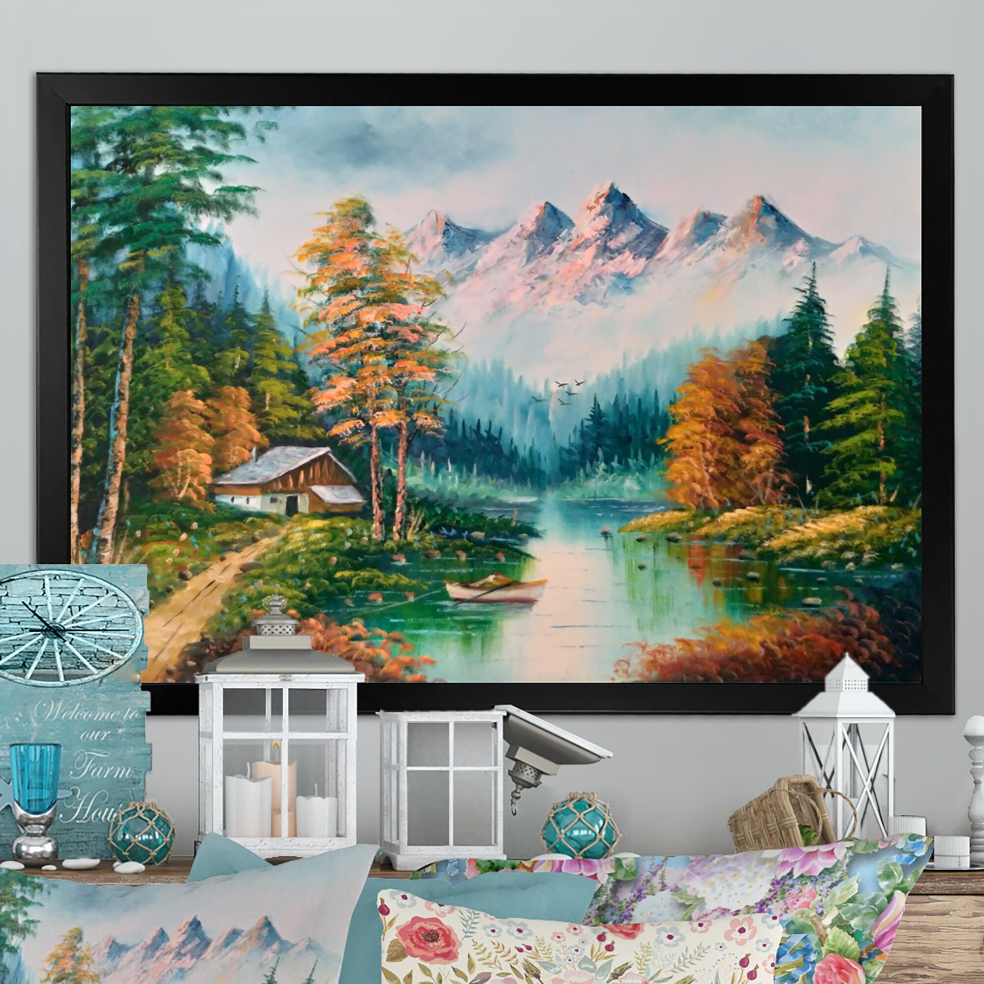 Designart "Autumn At the Countryhouse II" Lake House Cottage Framed Art Print