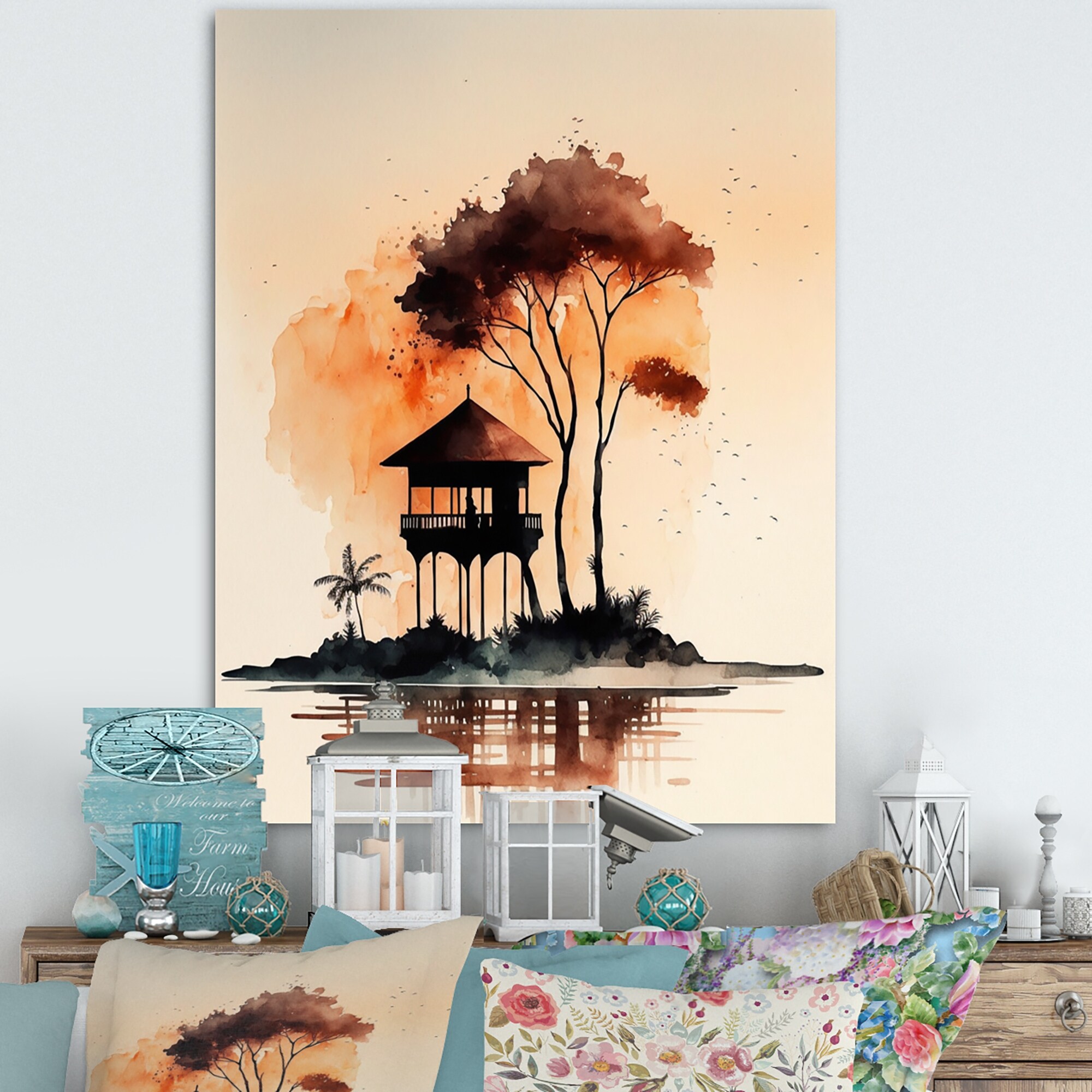 Designart "Lonely Autumn Watercolor Tree I" Landscape Forest Canvas Wall Art