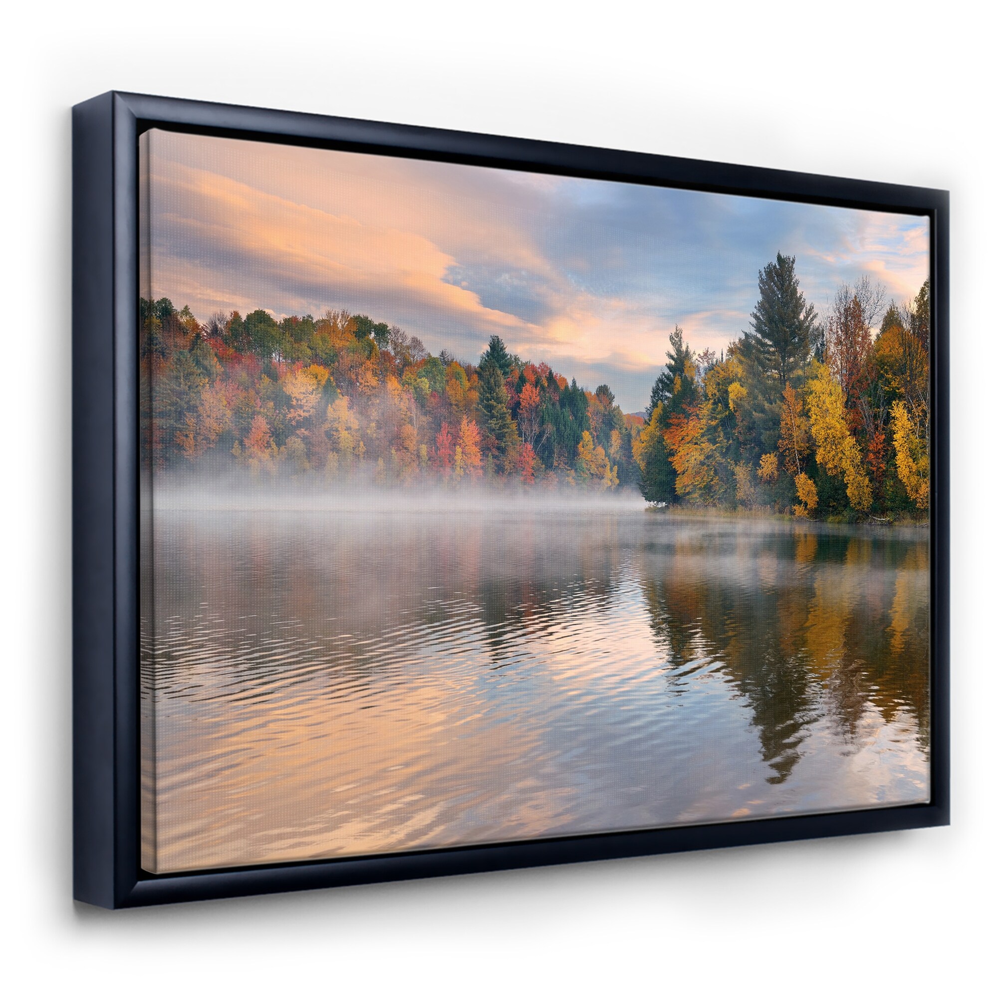 Designart "Autumn Foliage By the Lakeside" Traditional Framed Canvas Wall Art Print