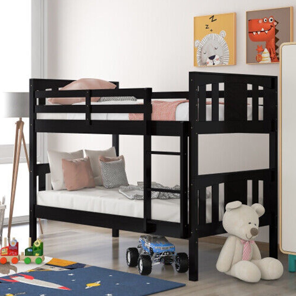 Full Over Full Bunk Bed, Solid Pine Wood Frame, with Ladder and Guardrails