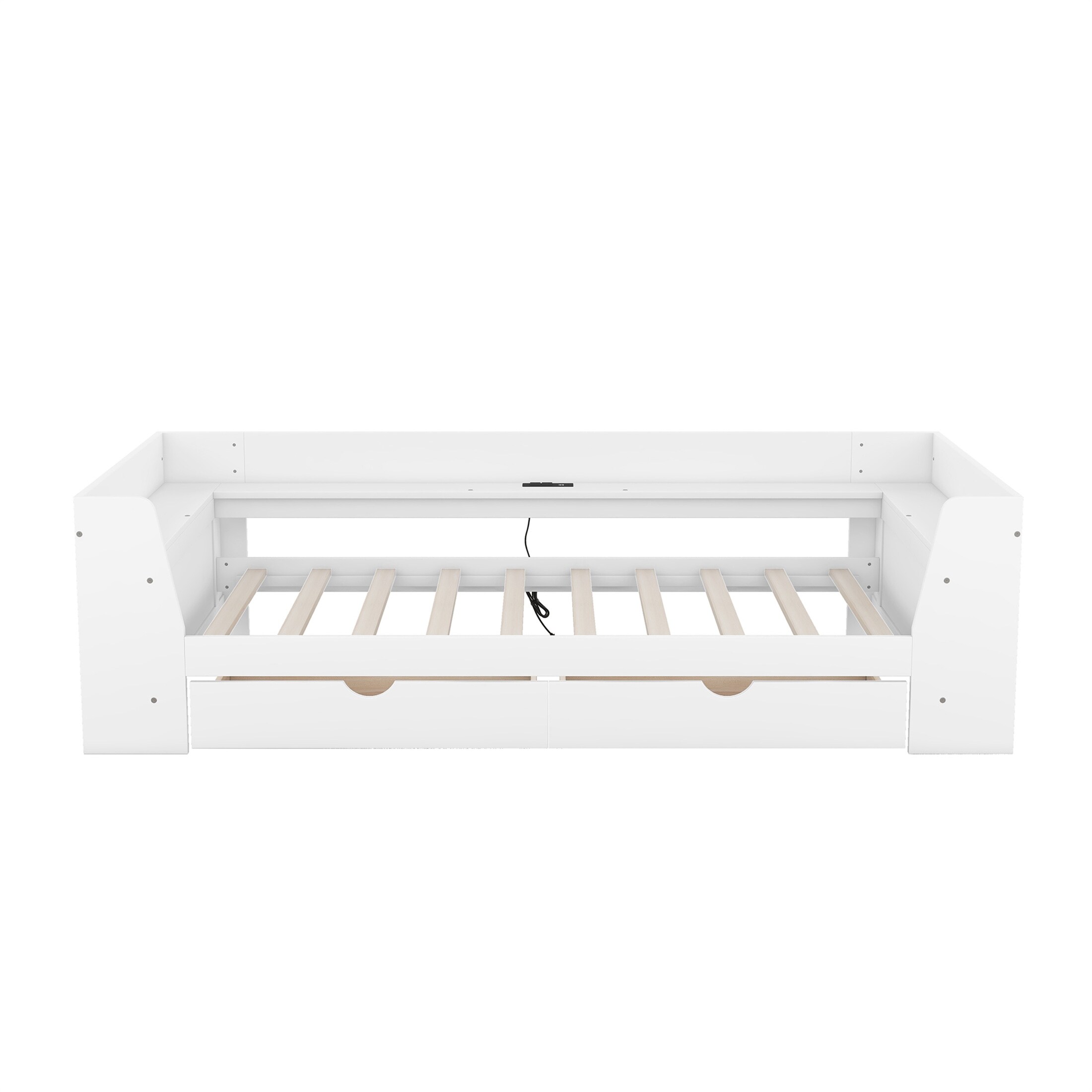Twin Size Solid Wood Daybed with Twin Size Trundle Bed and 2 Small Shelves
