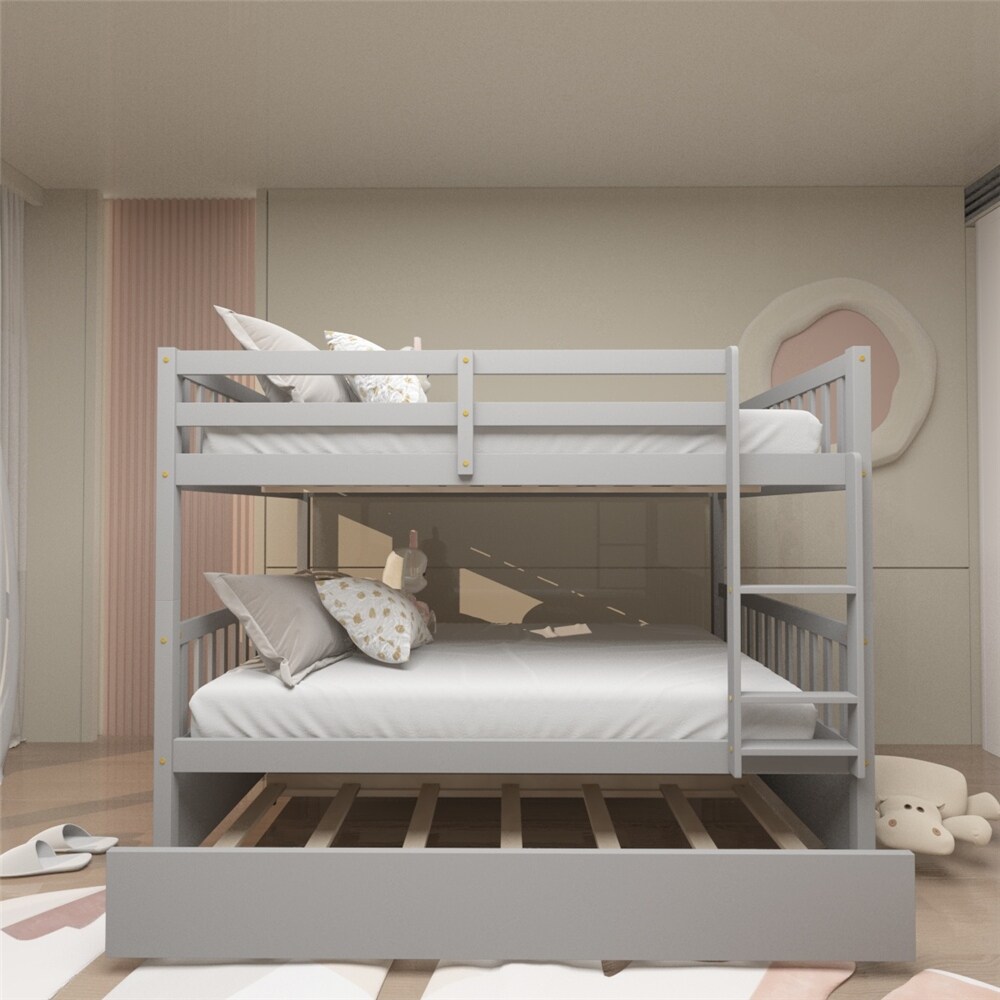 Solid Wood Twin Over Full Bunk Bed with Ladder and Trundle