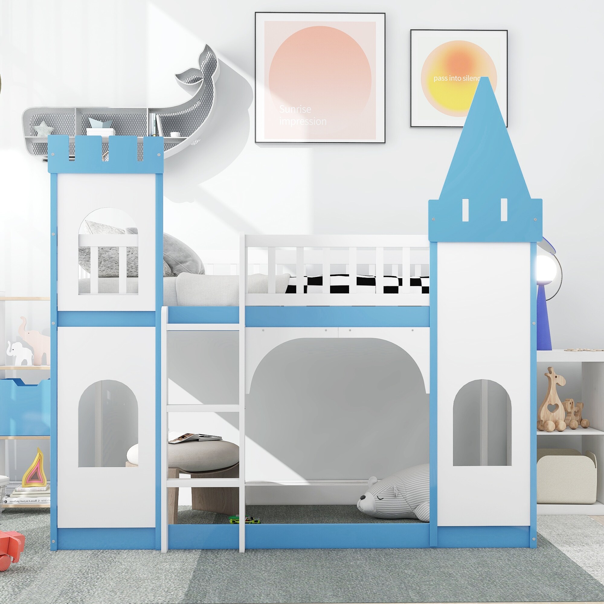 Twin Size Low Bunk House Bed with Convertible Slide and Ladder