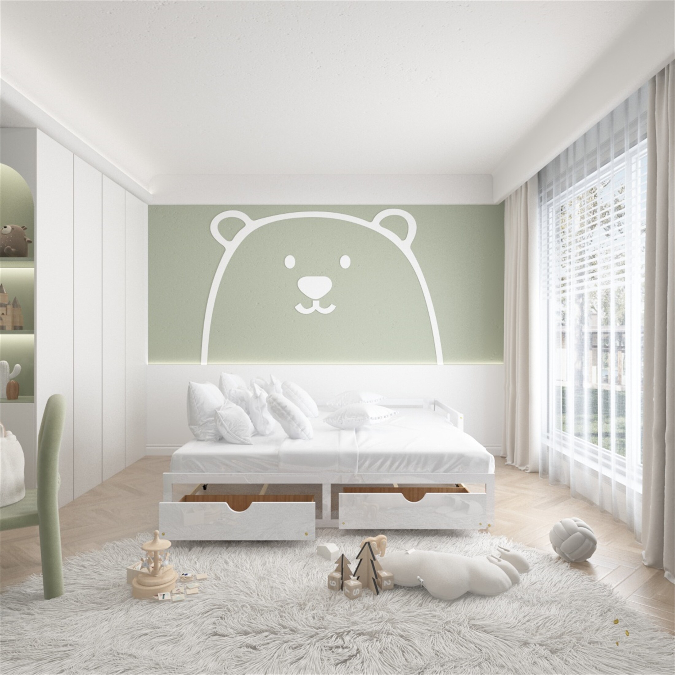 Contemporary Style Wooden Daybed with Trundle Bed and Two Storage Drawers , Extendable Bed Daybed,for Bedroom Living Room