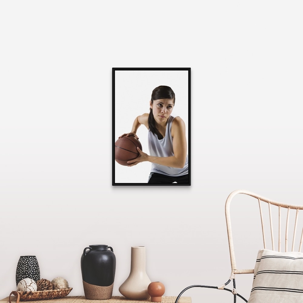 "Female basketball player" Black Float Frame Canvas Art