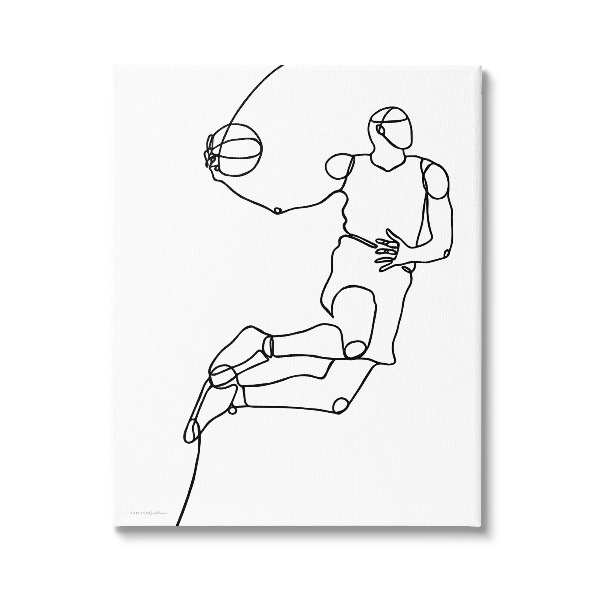 Stupell Industries Simple Line Doodle Playing Basketball Sport Design Canvas Wall Art
