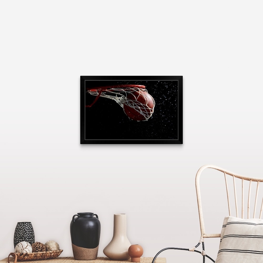 "Basketball going through hoop" Black Framed Print