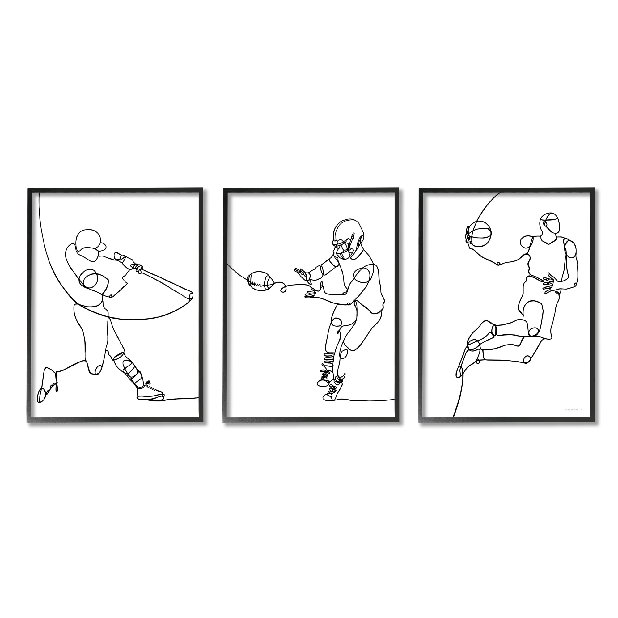 Stupell Industries Simple Line Doodle People Playing Sports Baseball Football Basketball Framed 3 Piece Wall Art - Black