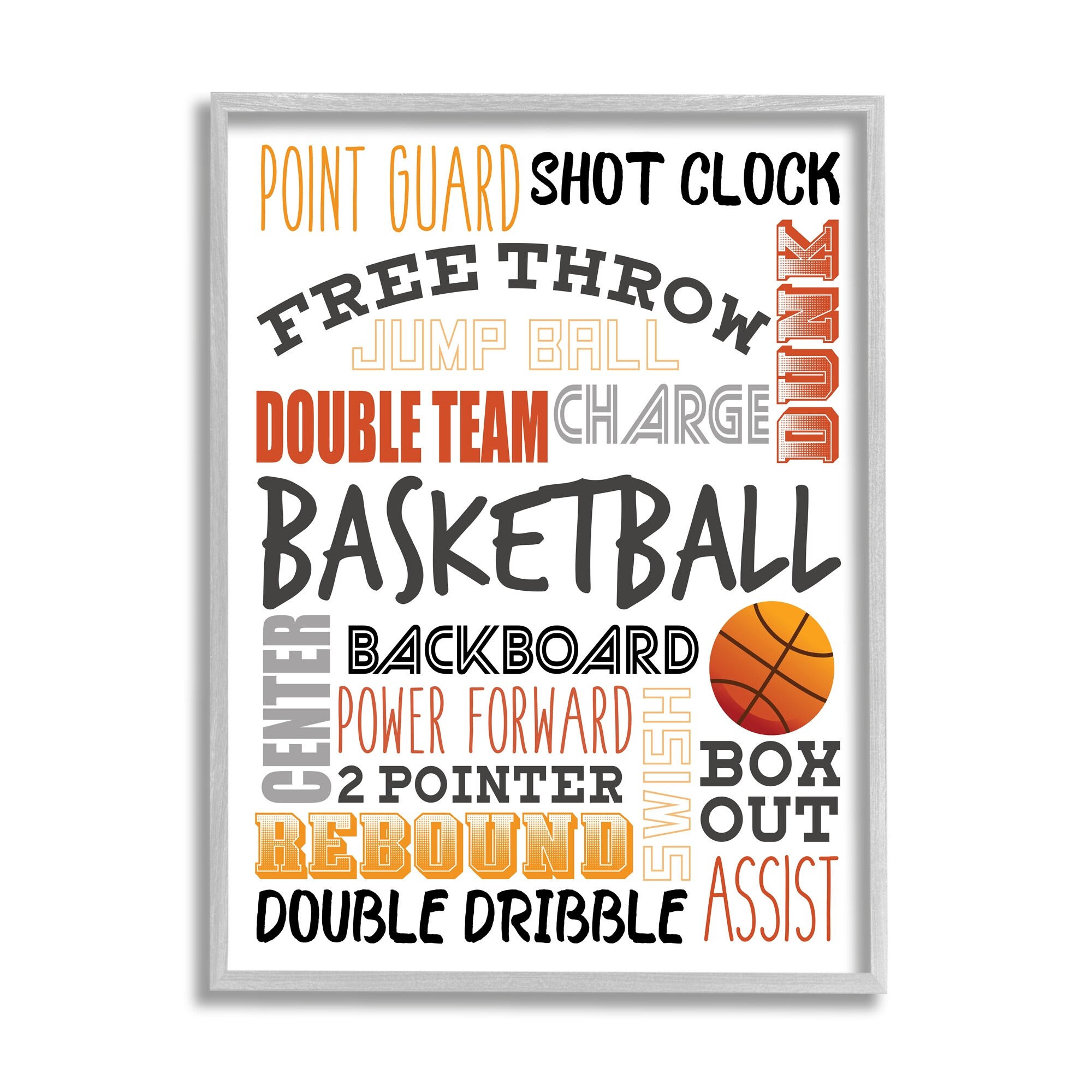 Stupell Basketball Game Terms Orange Typography Kids' Sports Framed Wall Art