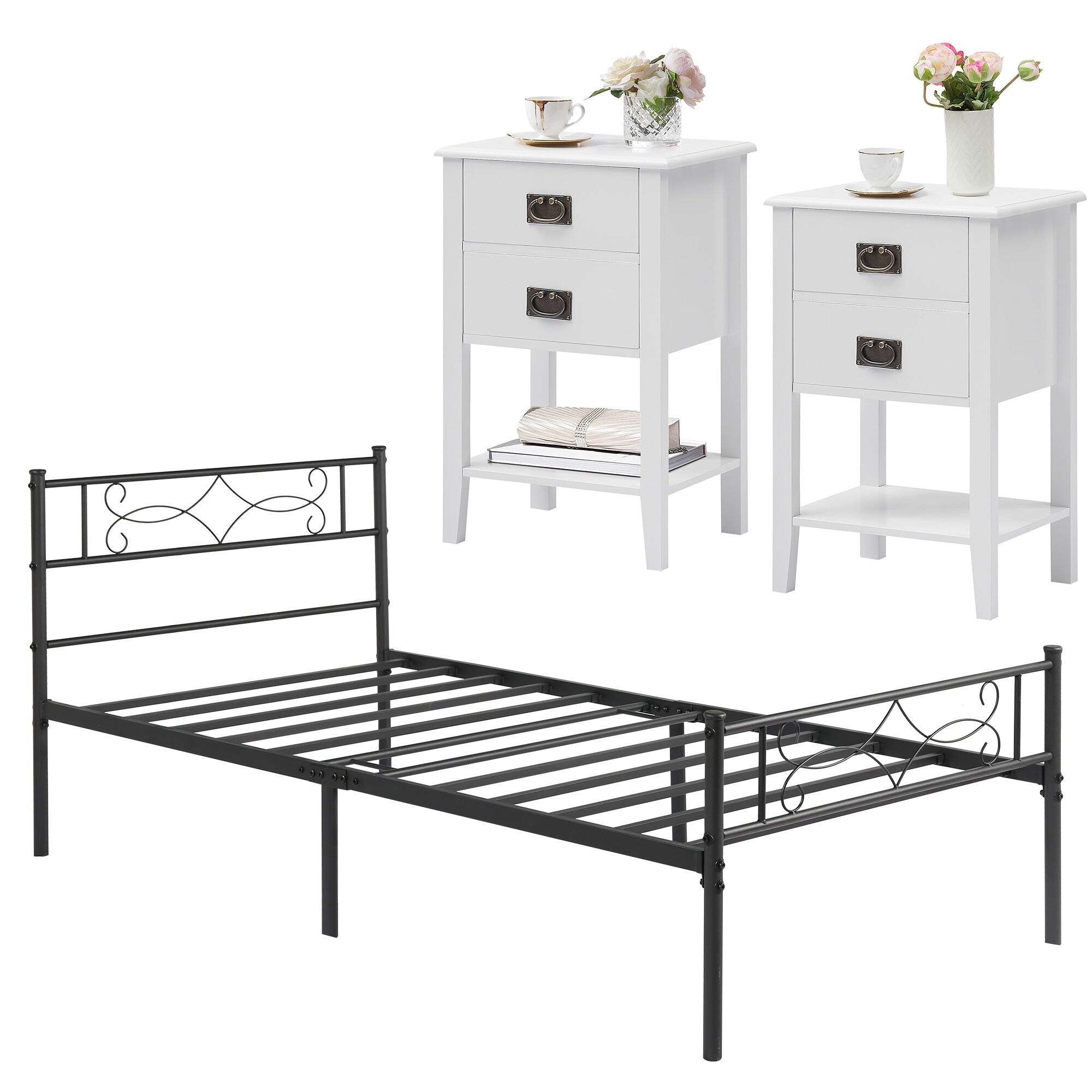 Taomika 3-pieces Bedroom Set with Metal Bed Frame and Wood Nightstands