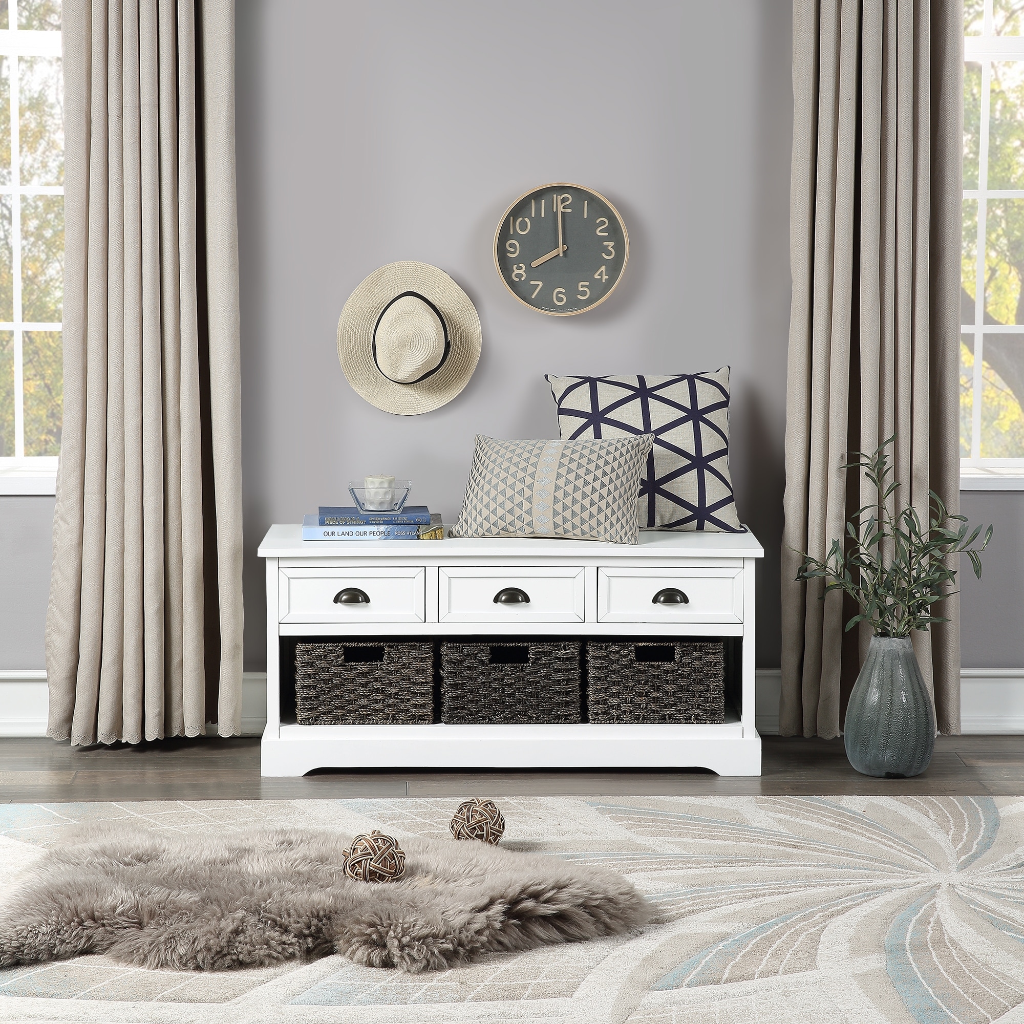 Wood Storage Bench with 3 Drawers and 3 Baskets