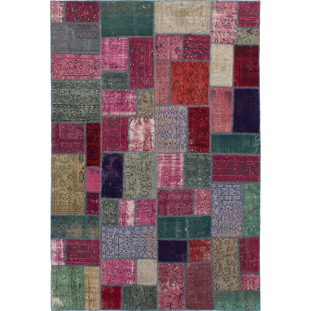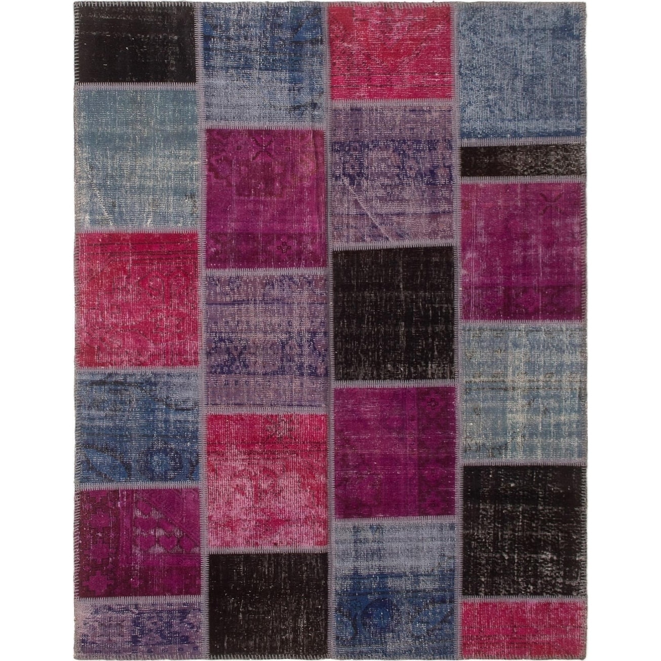 Hand-knotted Color Patchwork Black, Blue Wool Rug - 5'9 x 8'0