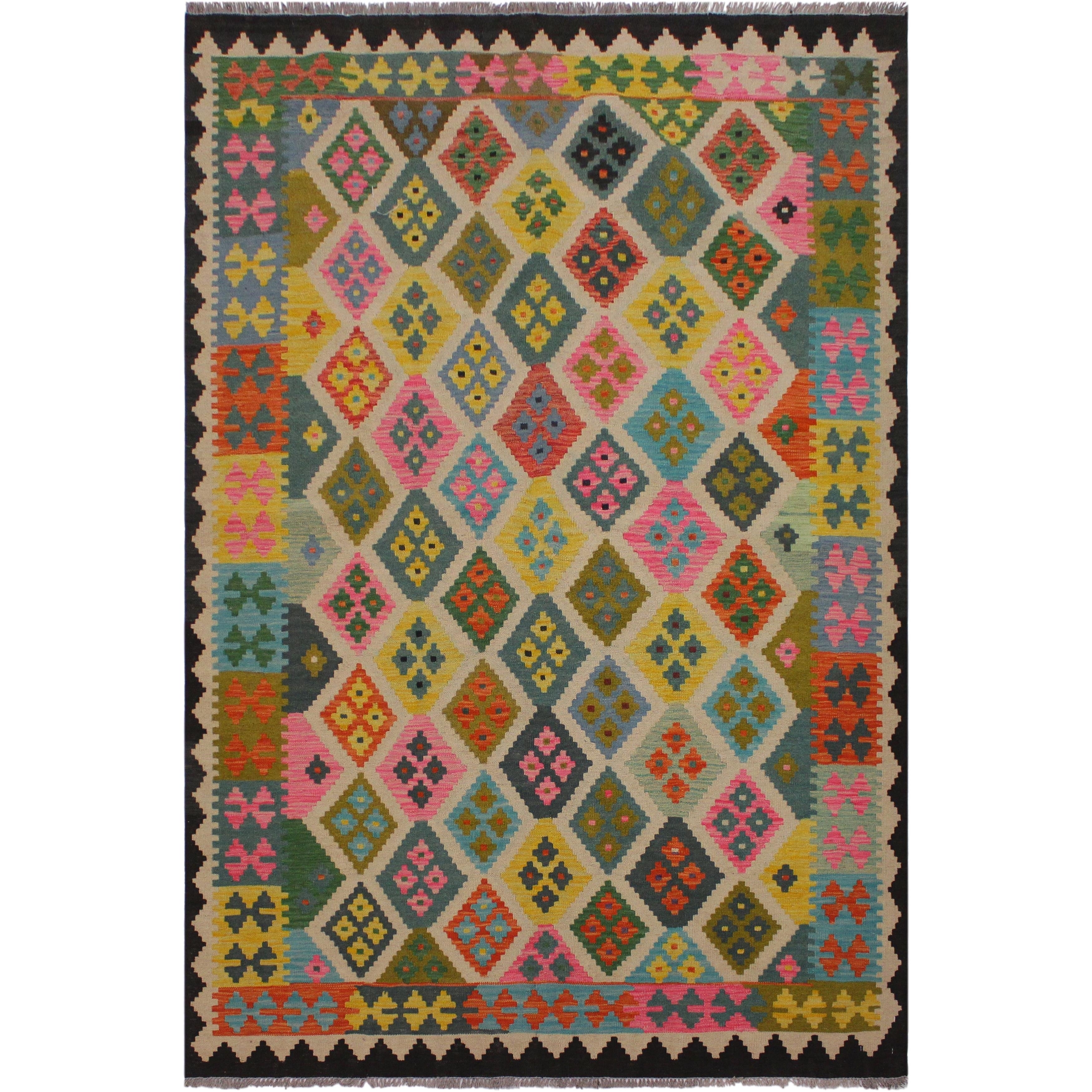 Handwoven Wool Black Contemporary Geometric Punja Killim Rug