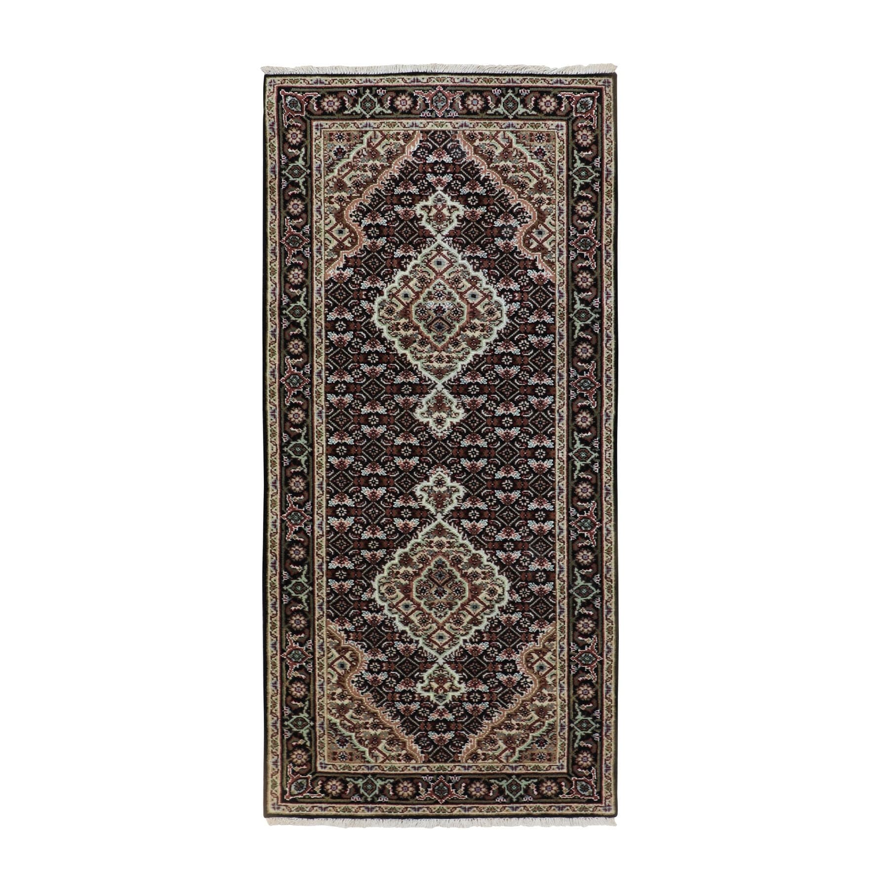 Shahbanu Rugs Black Tabriz Mahi Fish Design Wool And Silk Runner Hand Knotted Rug (2'8" x 6'1") - 2'8" x 6'1"