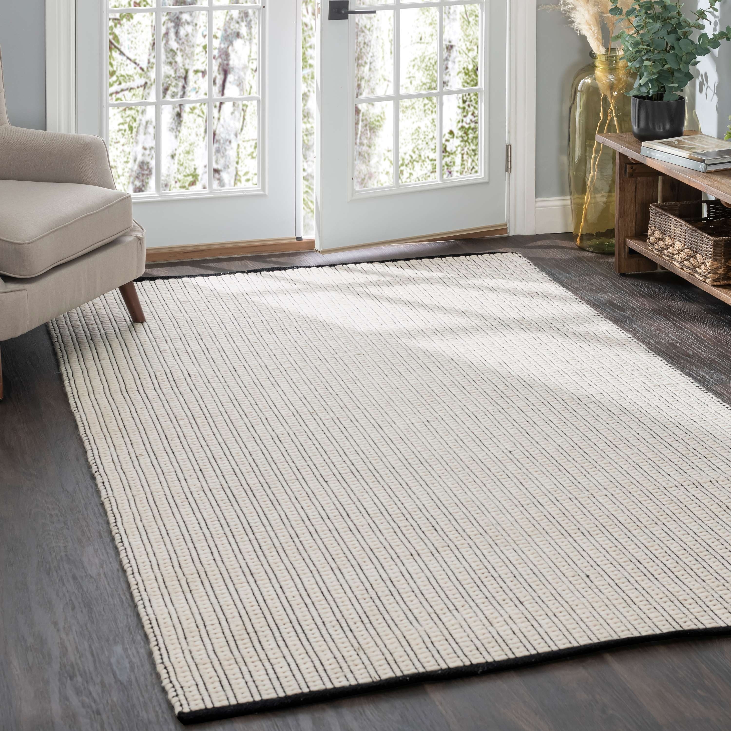 Fadden Minimalist Natural Wool Rug, Warm Taupe/Black, Area Rug