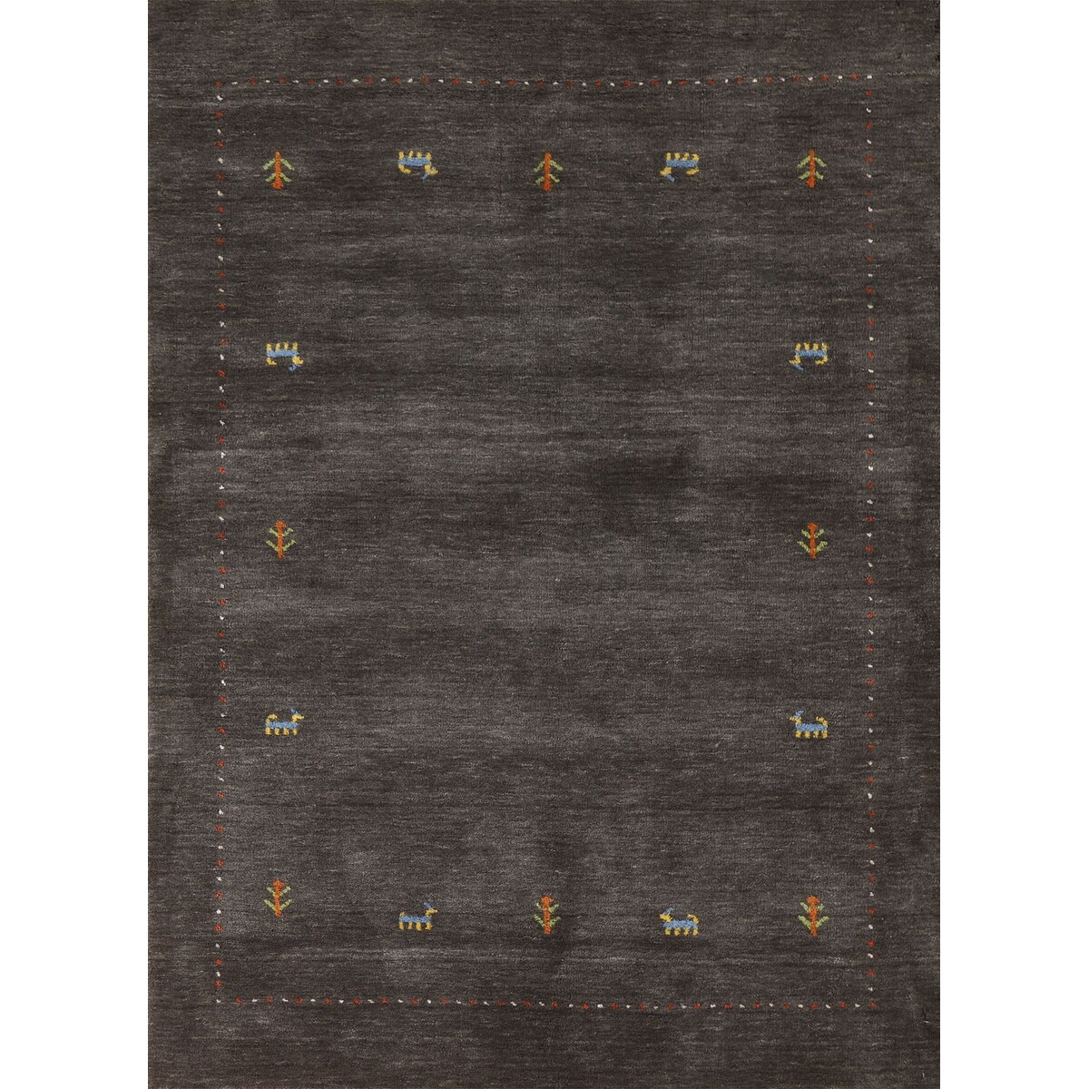 Tribal Gabbeh Oriental Area Rug Black Hand-Knotted Wool Carpet - 4'8"x 6'6"