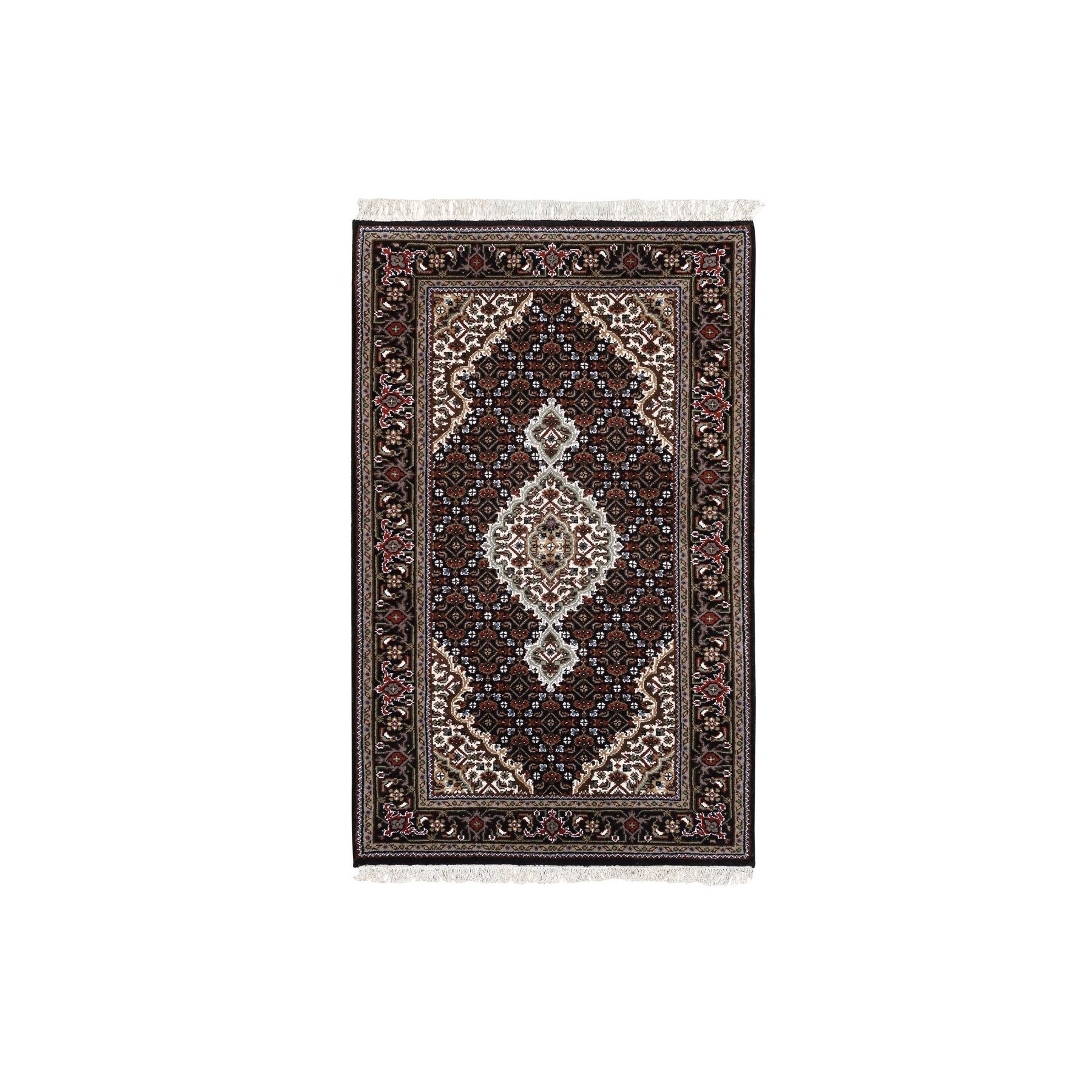 Shahbanu Rugs Tabriz Mahi Fish Medallion Design Wool And Silk Hand Knotted Black Oriental Rug (3'1" x 5'0") - 3'1" x 5'0"