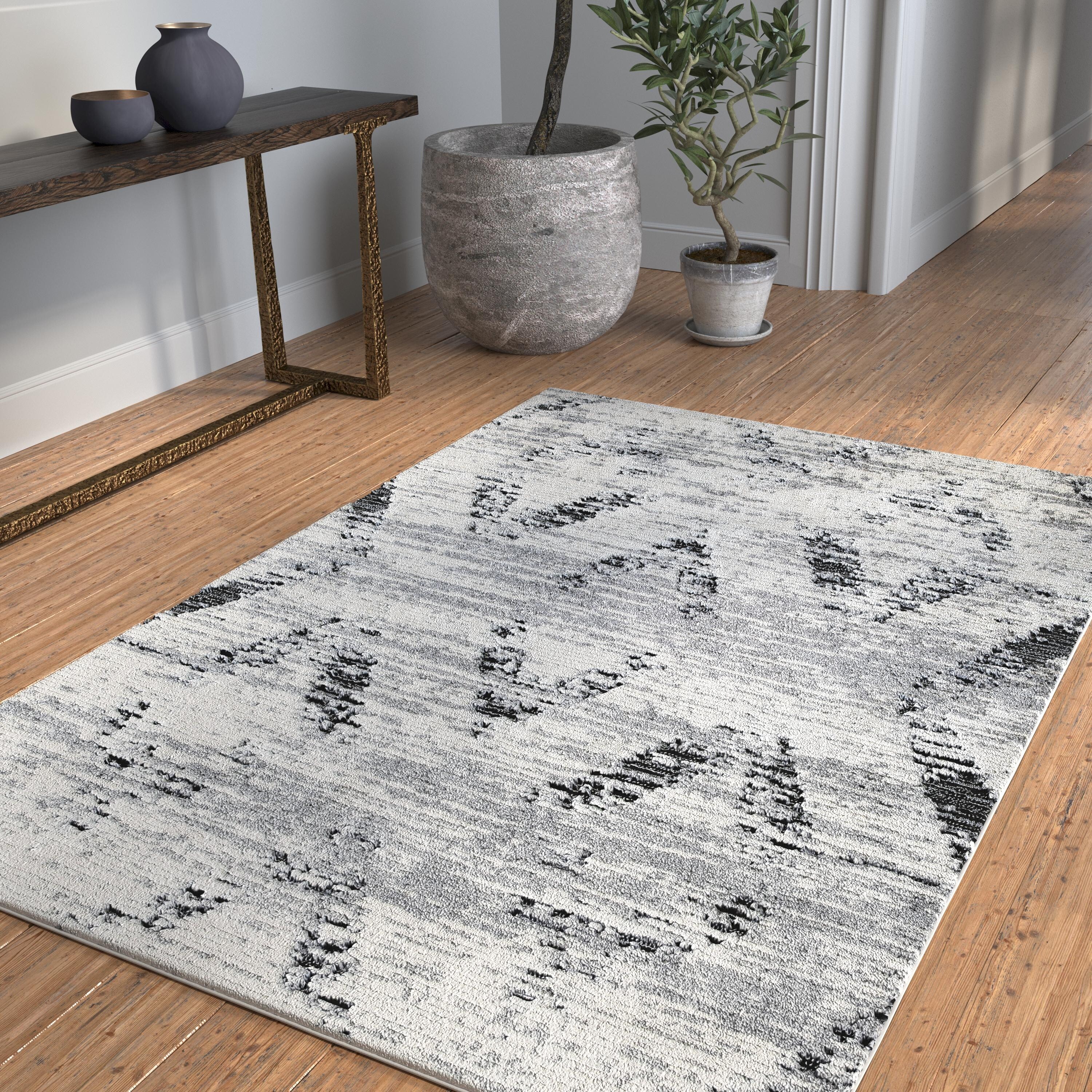Distressed Geometric Silver/Black Transitional Contemporary Rug