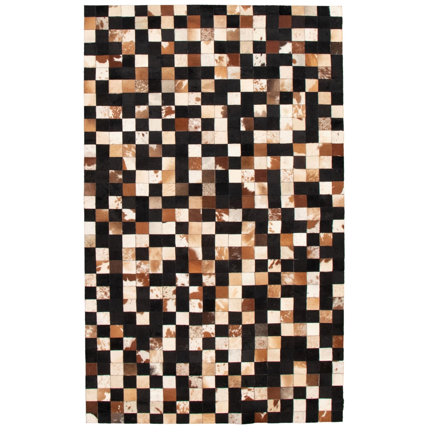 ECARPETGALLERY Handmade Cowhide Patchwork Black Leather Rug - 5'3 x 7'6