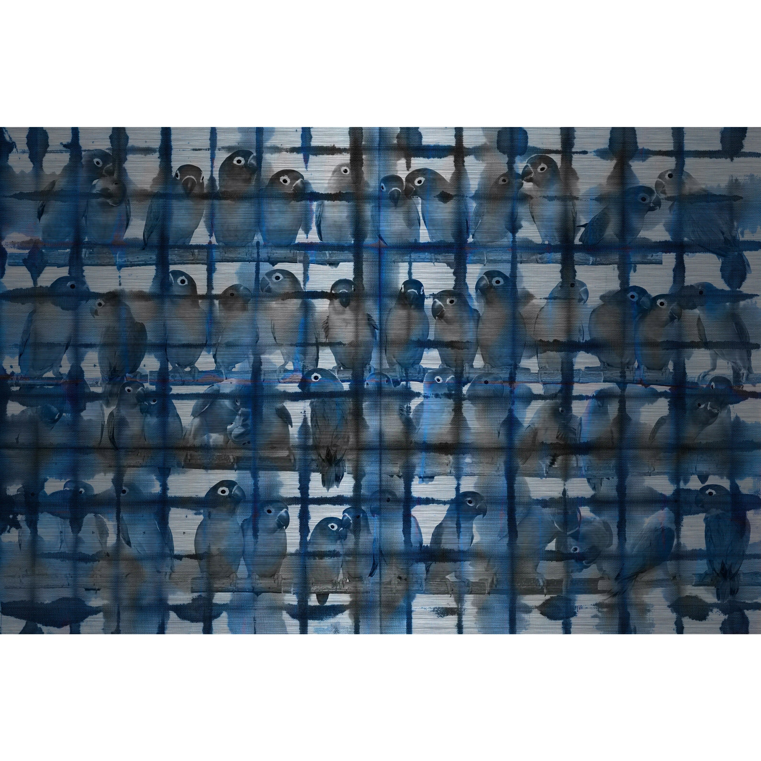 Handmade Parvez Taj - Crowded Blue Print on Brushed Aluminum