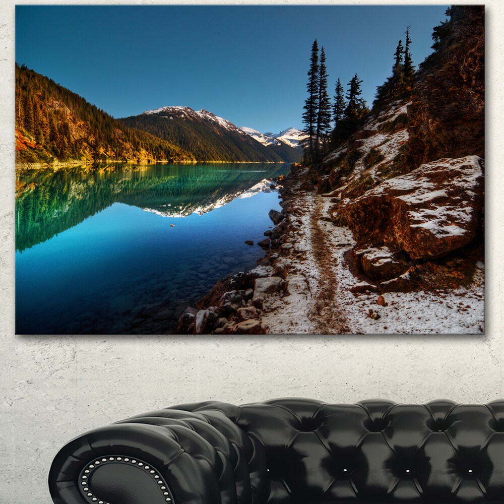 Designart "Blue Clear Lake with Mountains" Extra Large Landscape Art Canvas - Blue