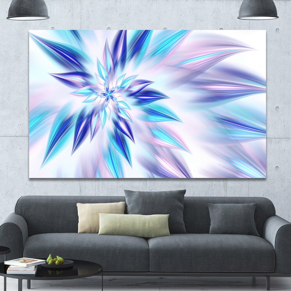 Designart "Light Blue Fractal Spiral Flower" Extra Large Abstract Canvas Art Print