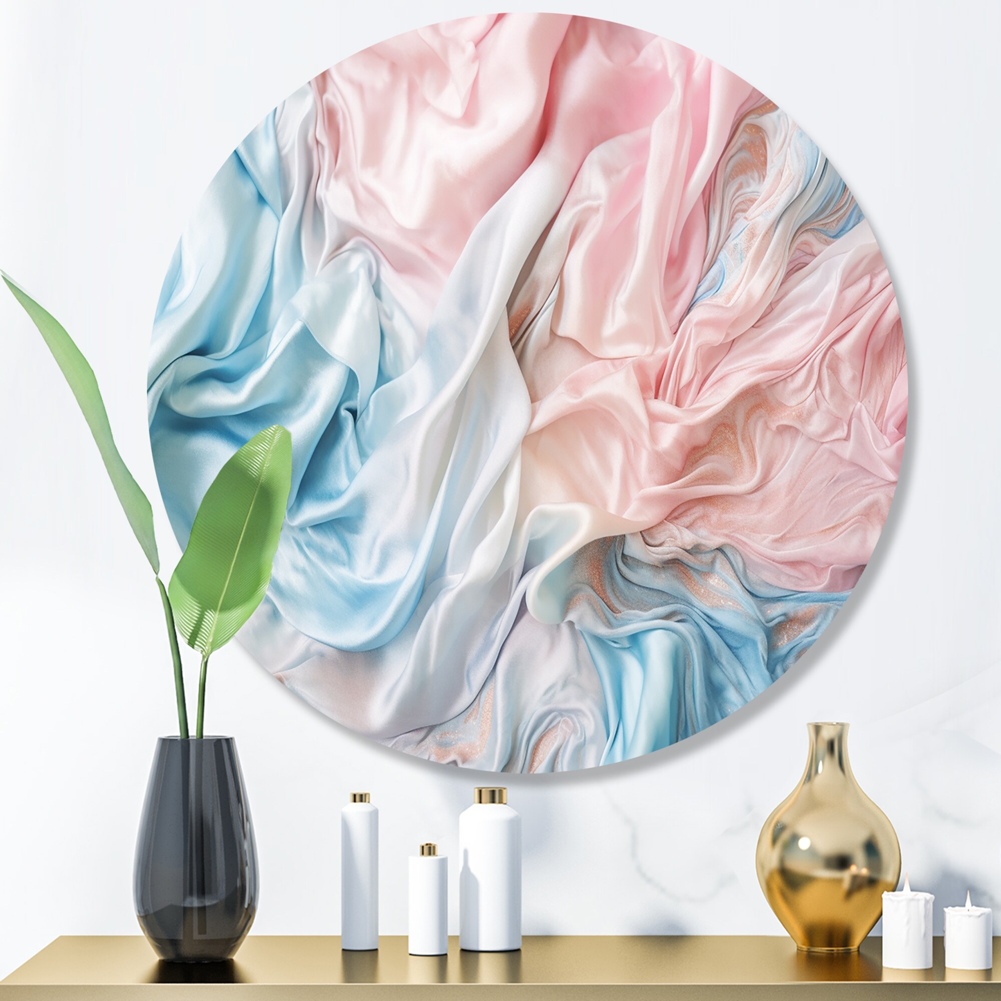 Designart "Pink Blue Dancing Colors I" Abstract Marble Metal Round Wall Art