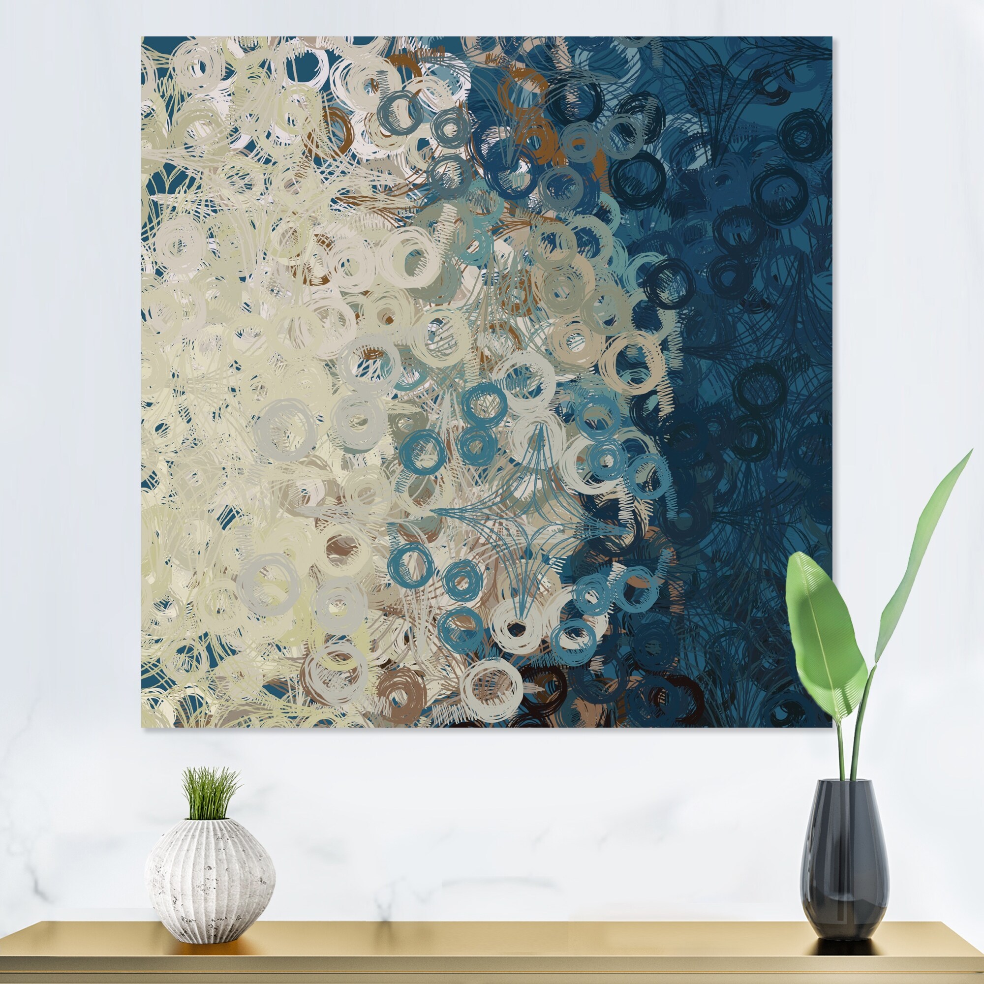 Designart "White And Blue Grunge Circle Art" Modern Canvas artwork