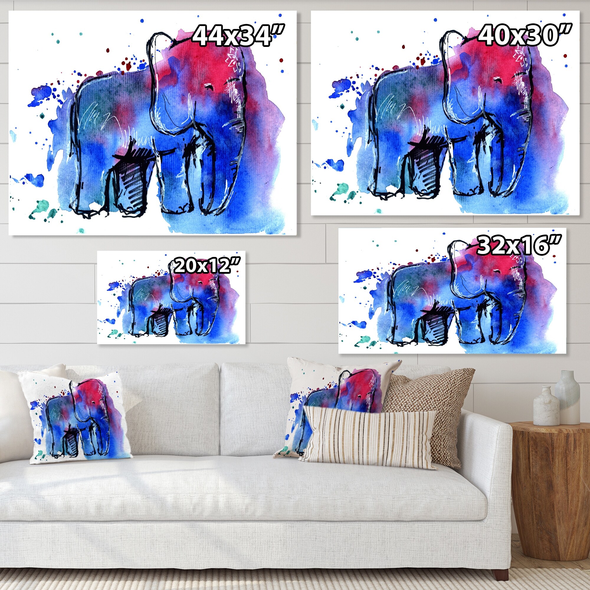 Designart "Blue And Red Elephant Impression" Traditional Canvas Wall Art Print