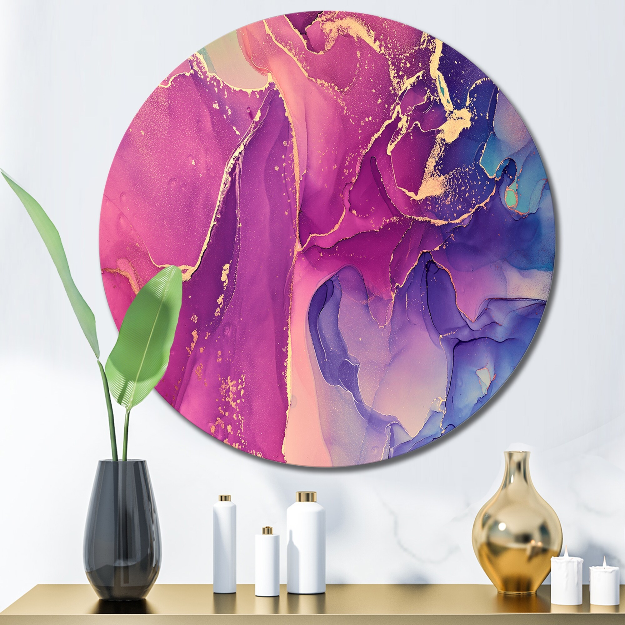 Designart 'Purple And Blue Liquid Fuchia Art XII' Modern Metal Circle Wall Art