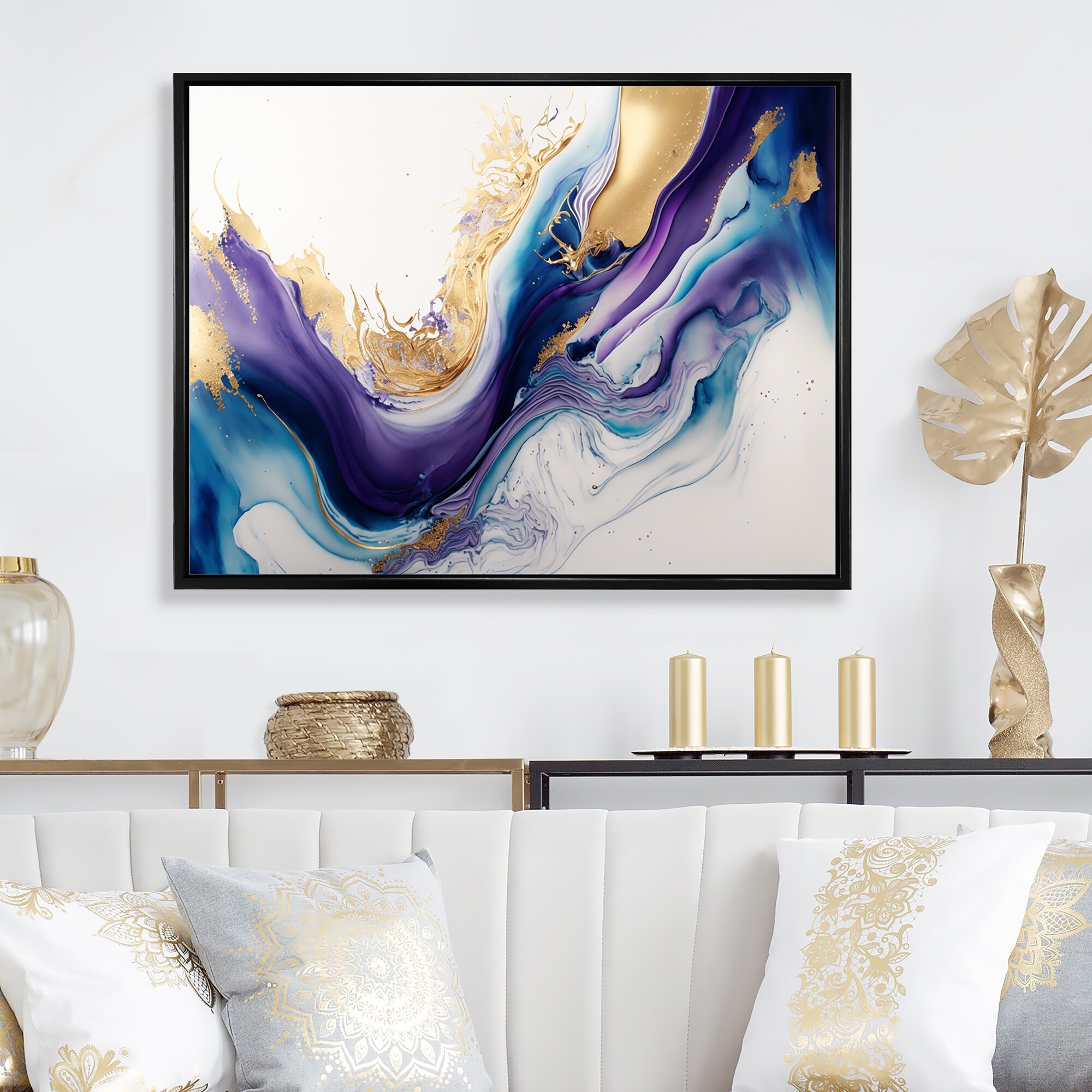 Designart "Blue, Gold And Purple Splash Paint III" Modern Framed Canvas Art Print