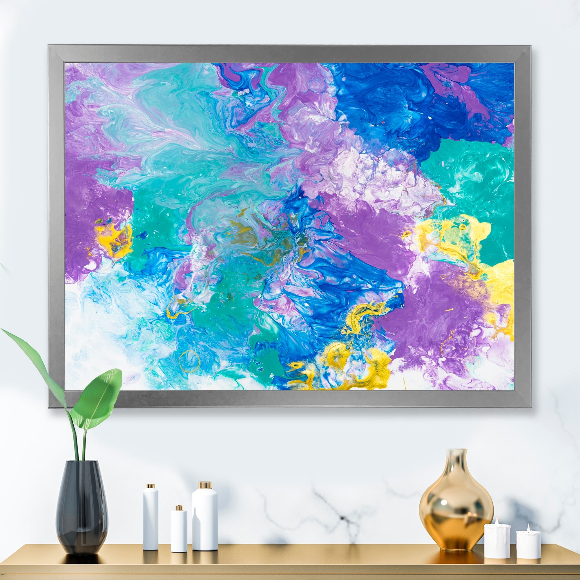 Designart "Abstract Blue, Pruple and Yellow" Modern Framed Art Print