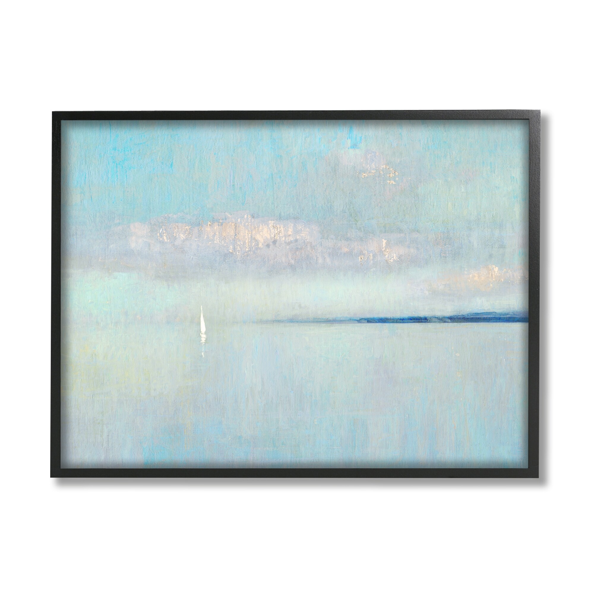 Stupell Atmospheric Cloudy Ocean Scenery Lone Sailboat Floating Framed Wall Art, Design by Katie Swatland - Blue