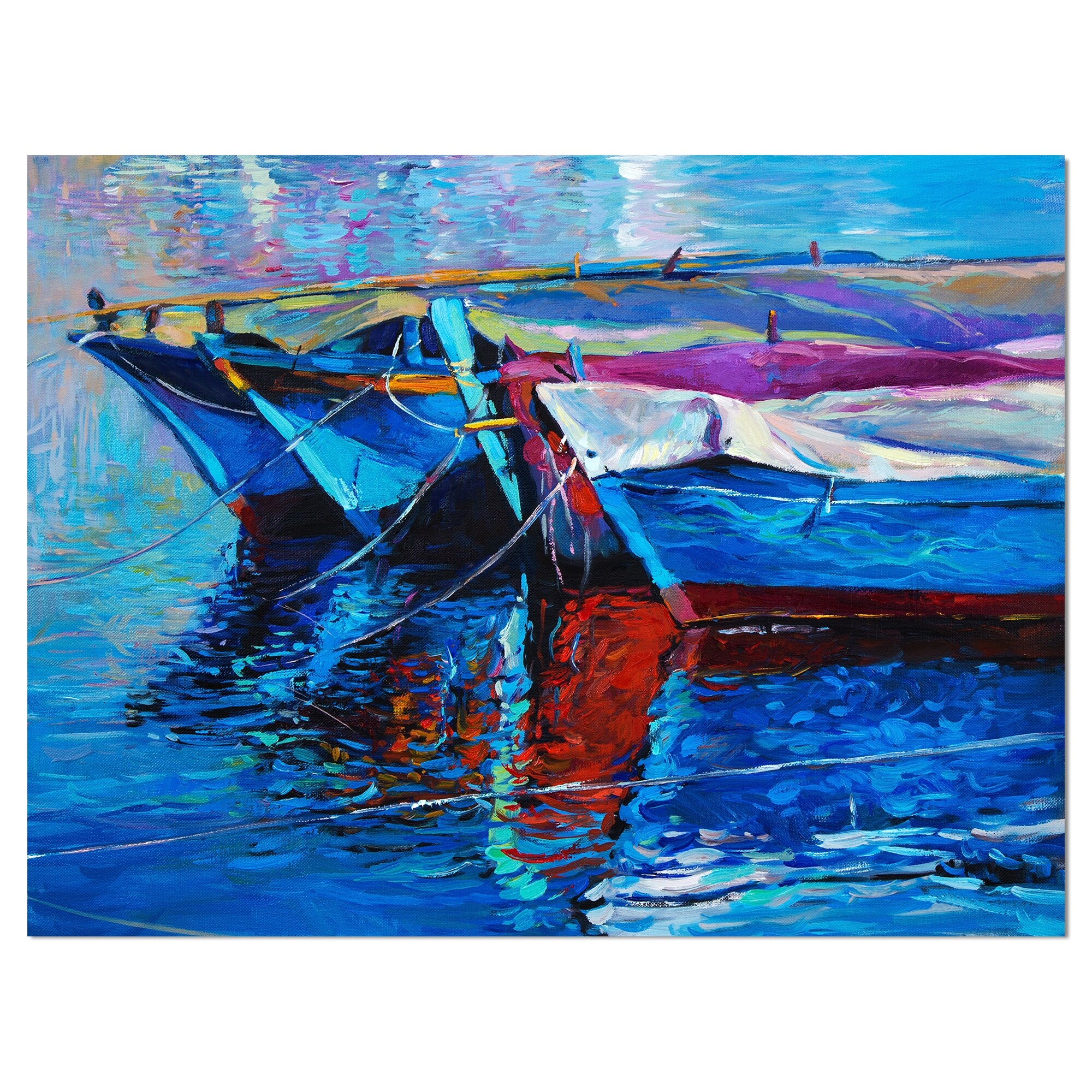 Designart "Blue Boats in Ocean Blue" Sea & Shore Print on Wrapped Canvas