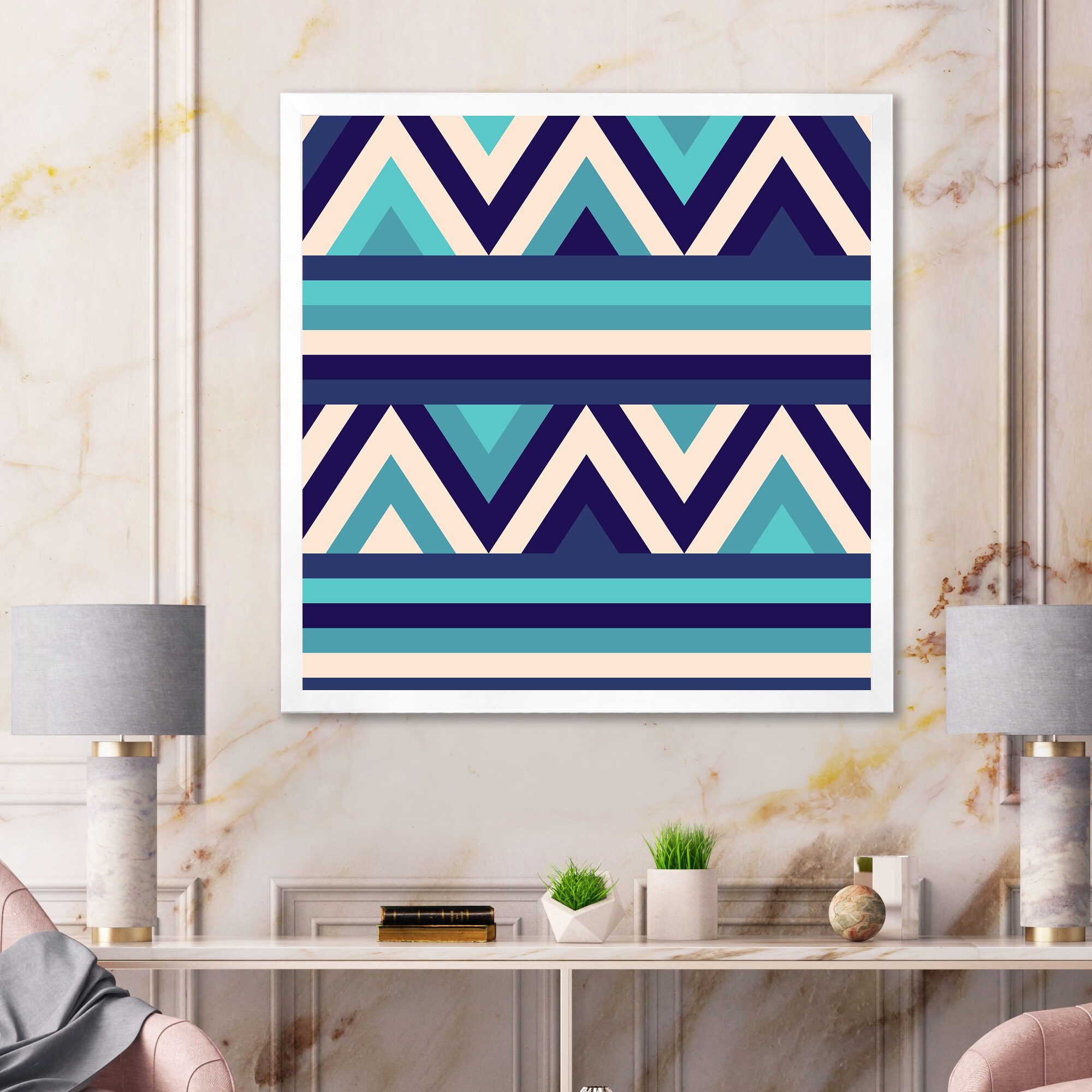 Designart "Ethnic Zigzag in Shades of Blue" Modern Framed Art Print
