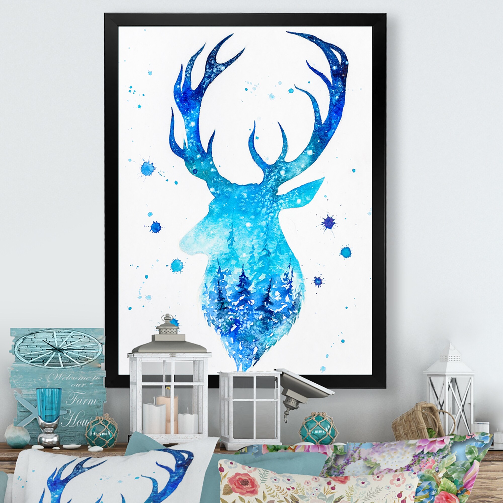 Designart "Abstract Blue Deer Head" Traditional Framed Wall Art