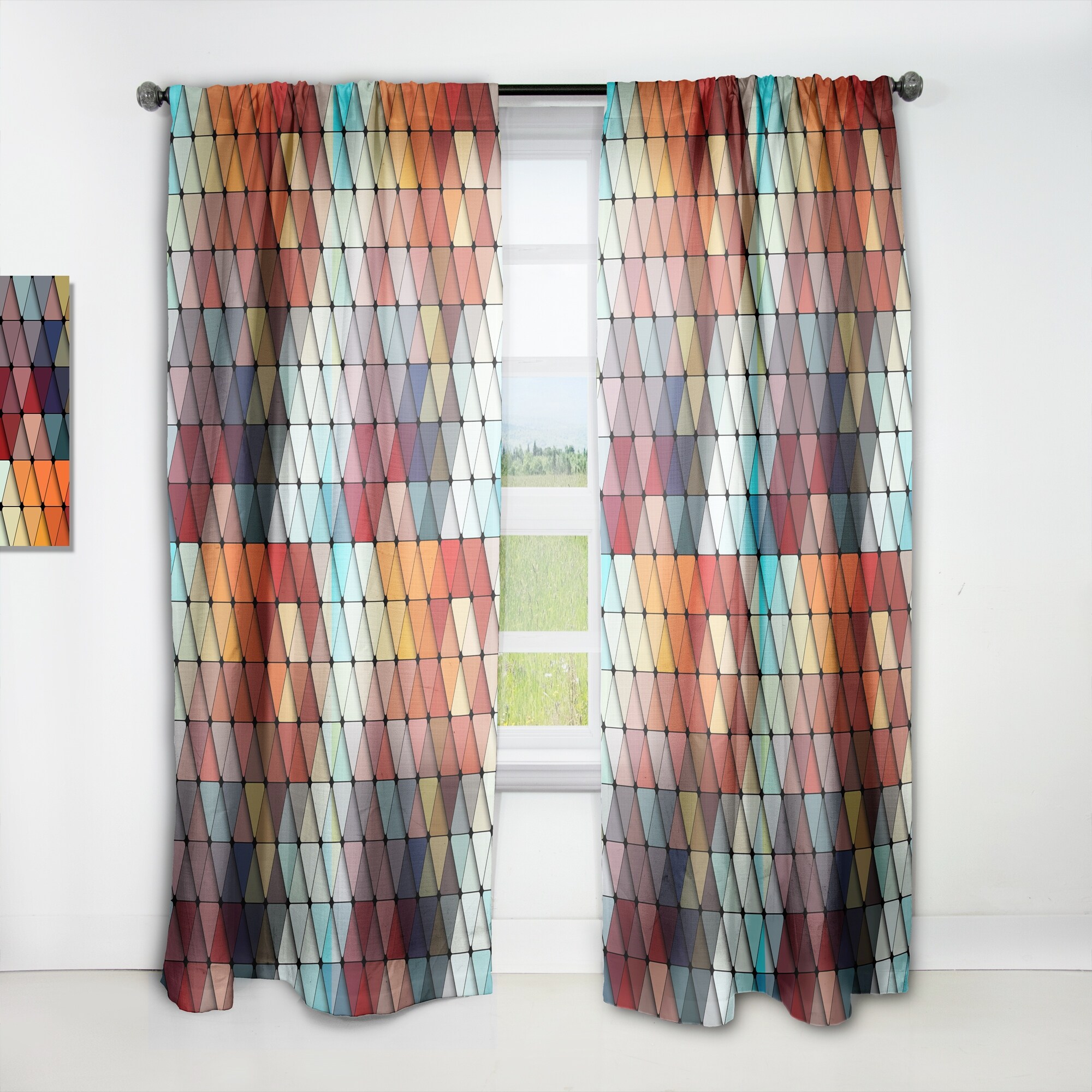 Designart '3D Diamond Shaped Geometry in Shades of Blue and Red' Modern Curtain Single Panel
