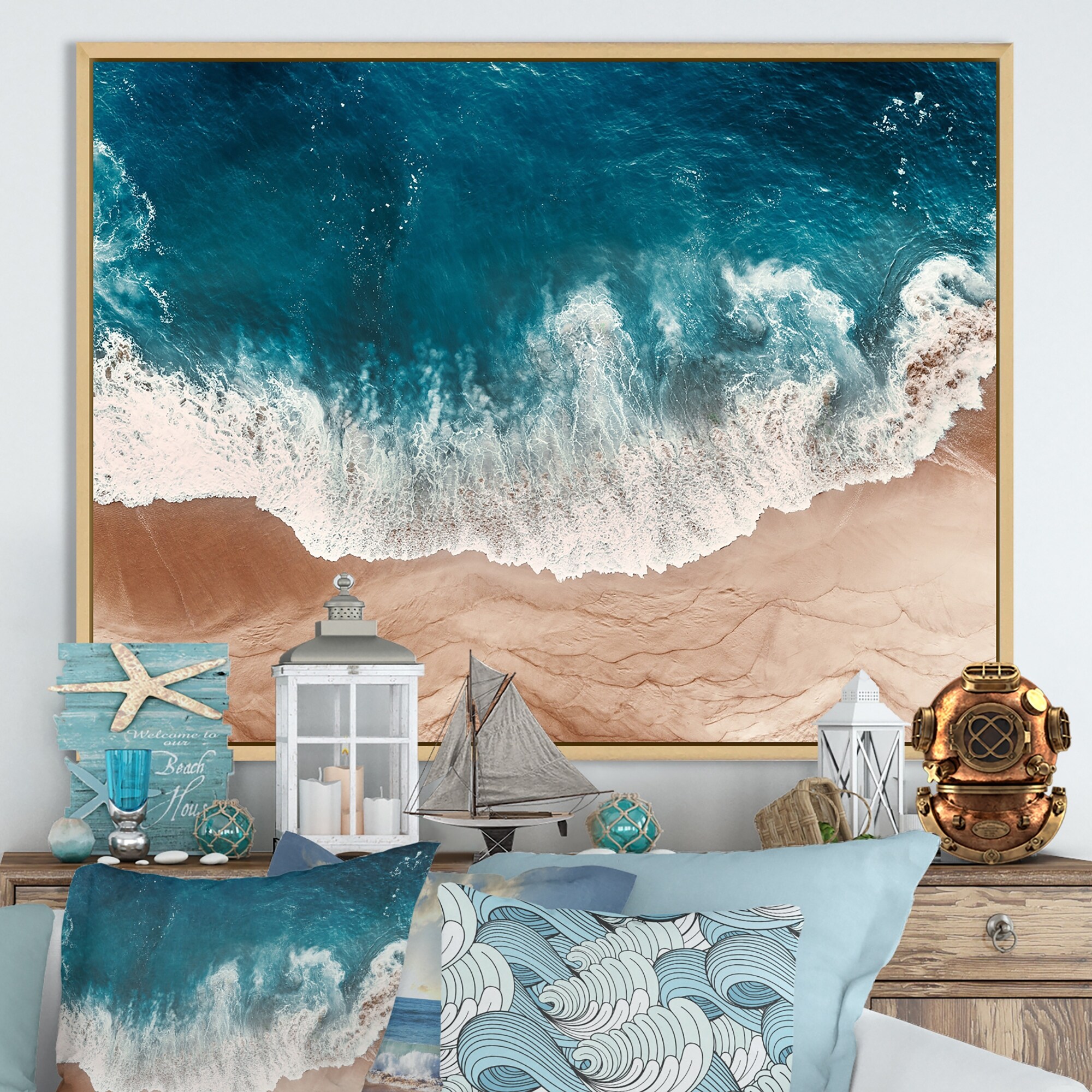 Designart "Aerial View Blue Ocean Waves II" Nautical & Coastal Framed Canvas Wall Art