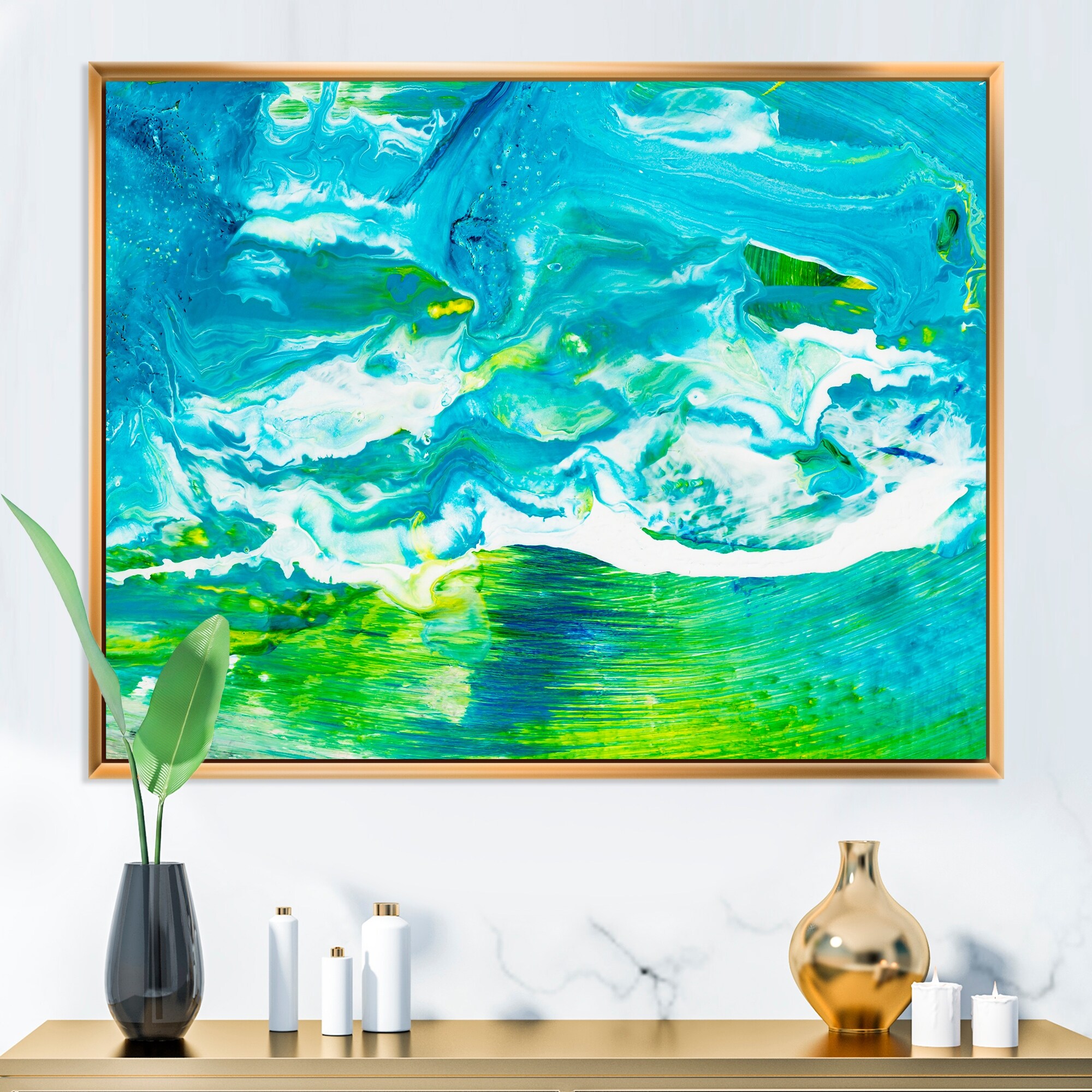 Designart "Blue And Green Abstract Ink" Modern Framed Canvas Wall Art Print