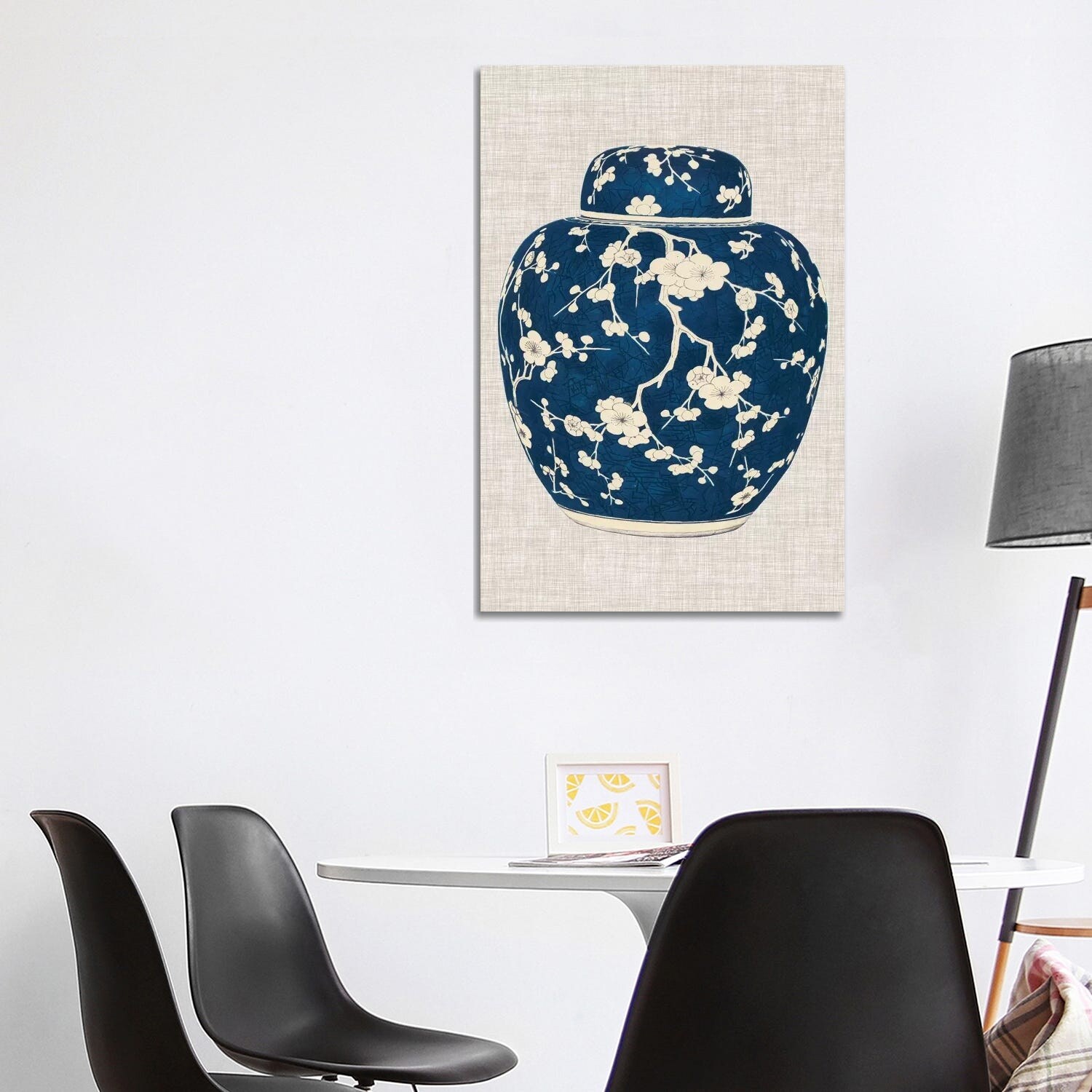 iCanvas "Blue & White Ginger Jar on Linen II" by Vision Studio Canvas Print