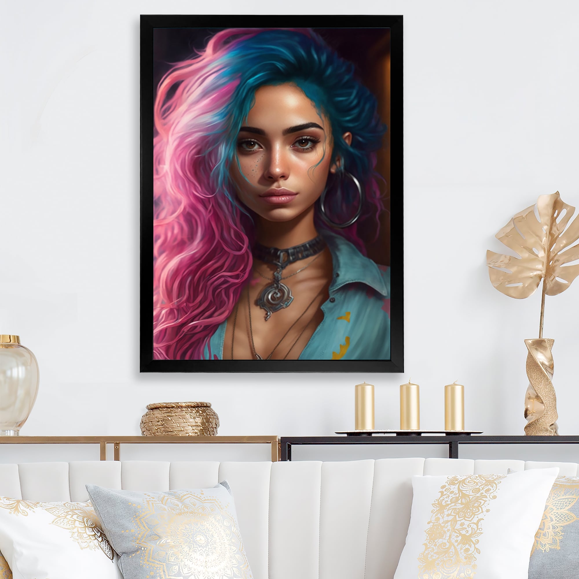 Designart "Fashion Indian Woman in Pink And Blue III" Contemporary Glam Framed Art Print
