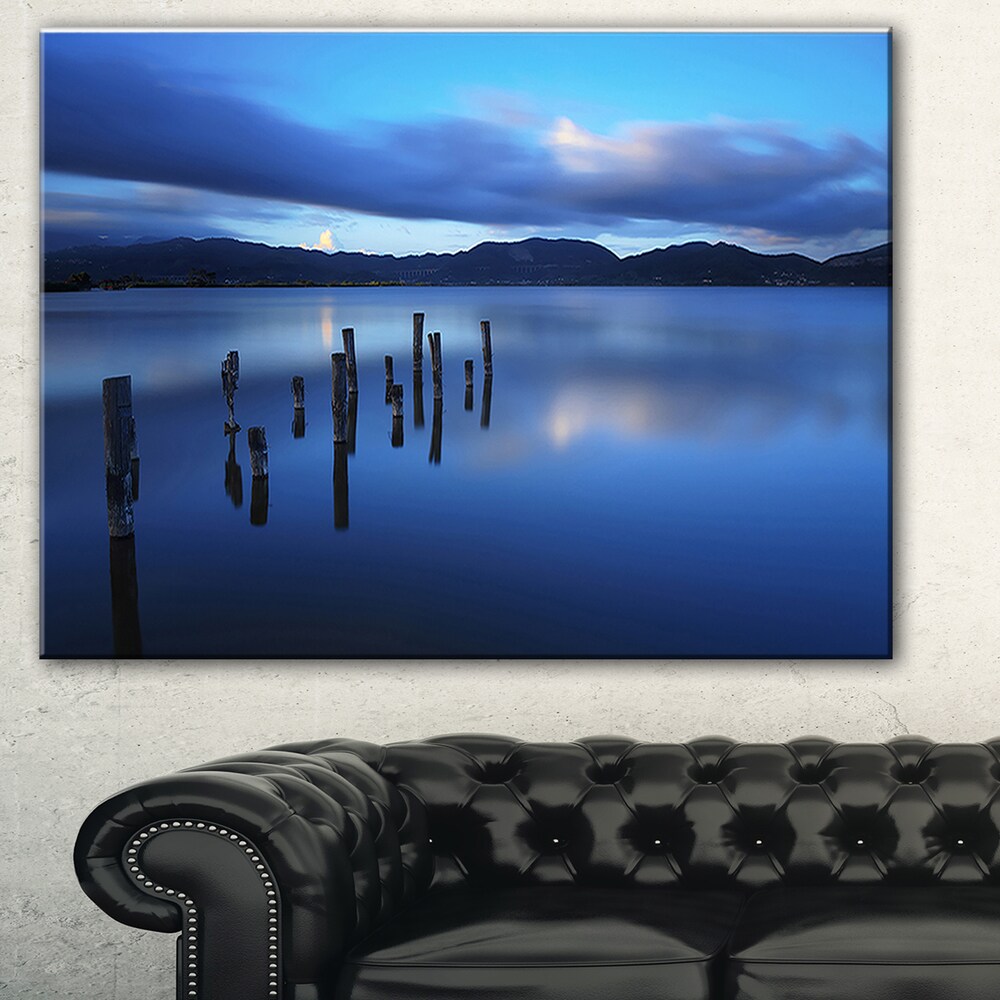 Designart "Dark Blue Sea with Pier Remains" Seascape Photo Canvas Print