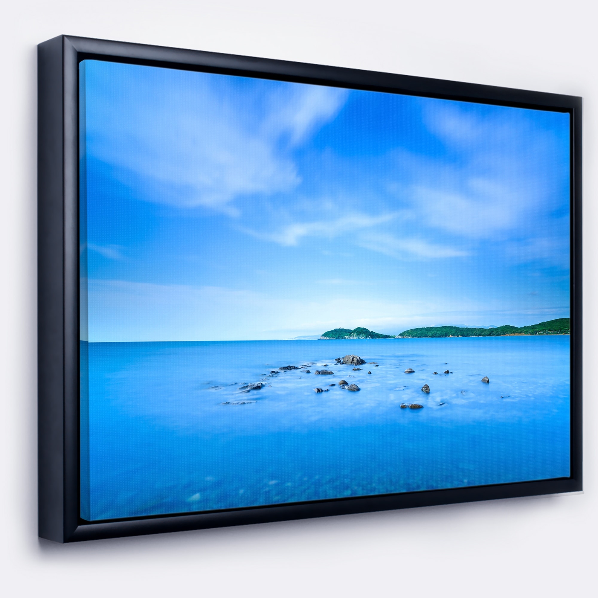 Designart "Baratti Bay Small Rocks in Blue Sea" Extra Large Seashore Framed Canvas Art
