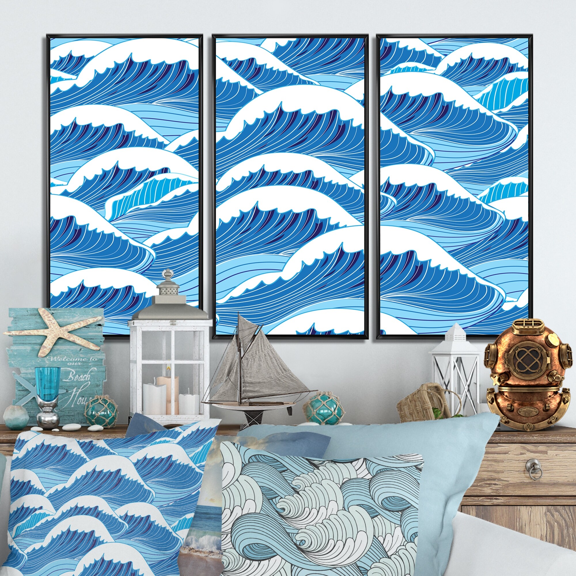 Designart "Abstract Light Blue Sea Waves" Nautical & Coastal Framed Wall Art Set of 3 - 4 Colors of Frames