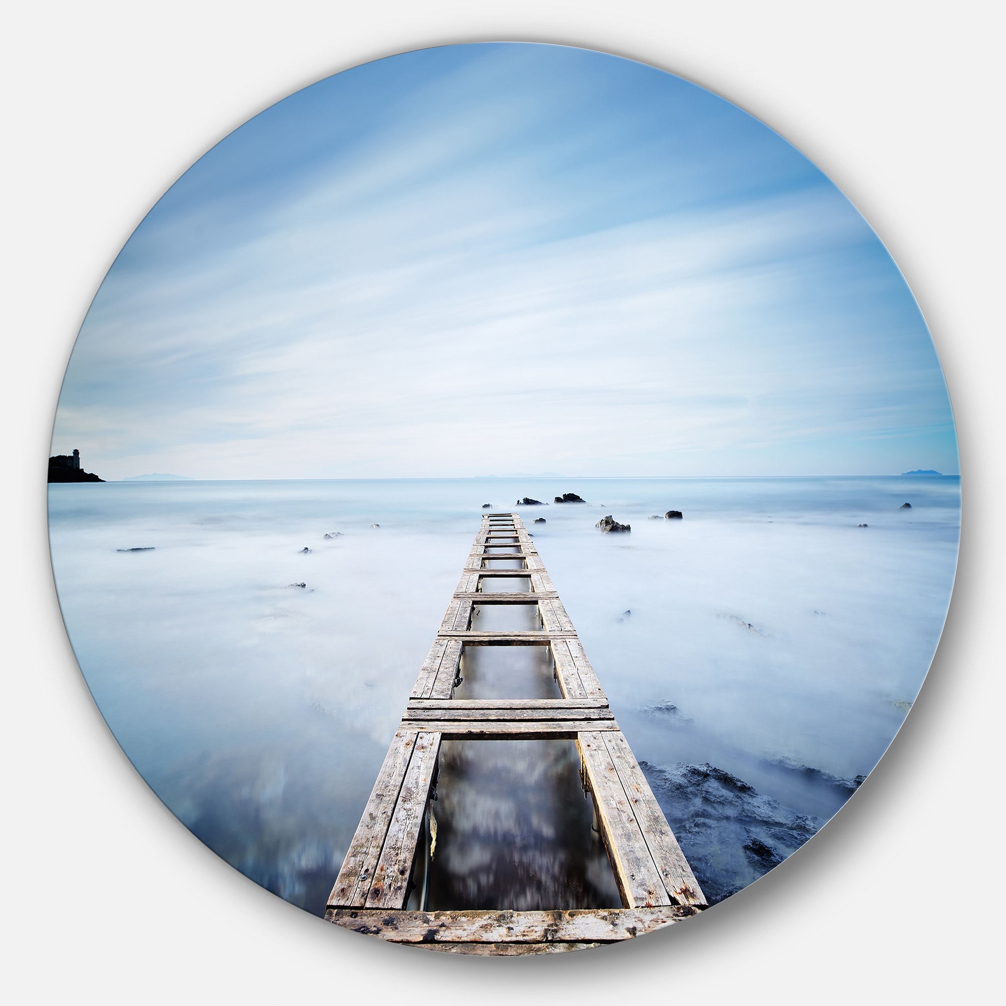 Designart 'Wooden Jetty in Morning Blue Sea' Landscape Circle Wall Art