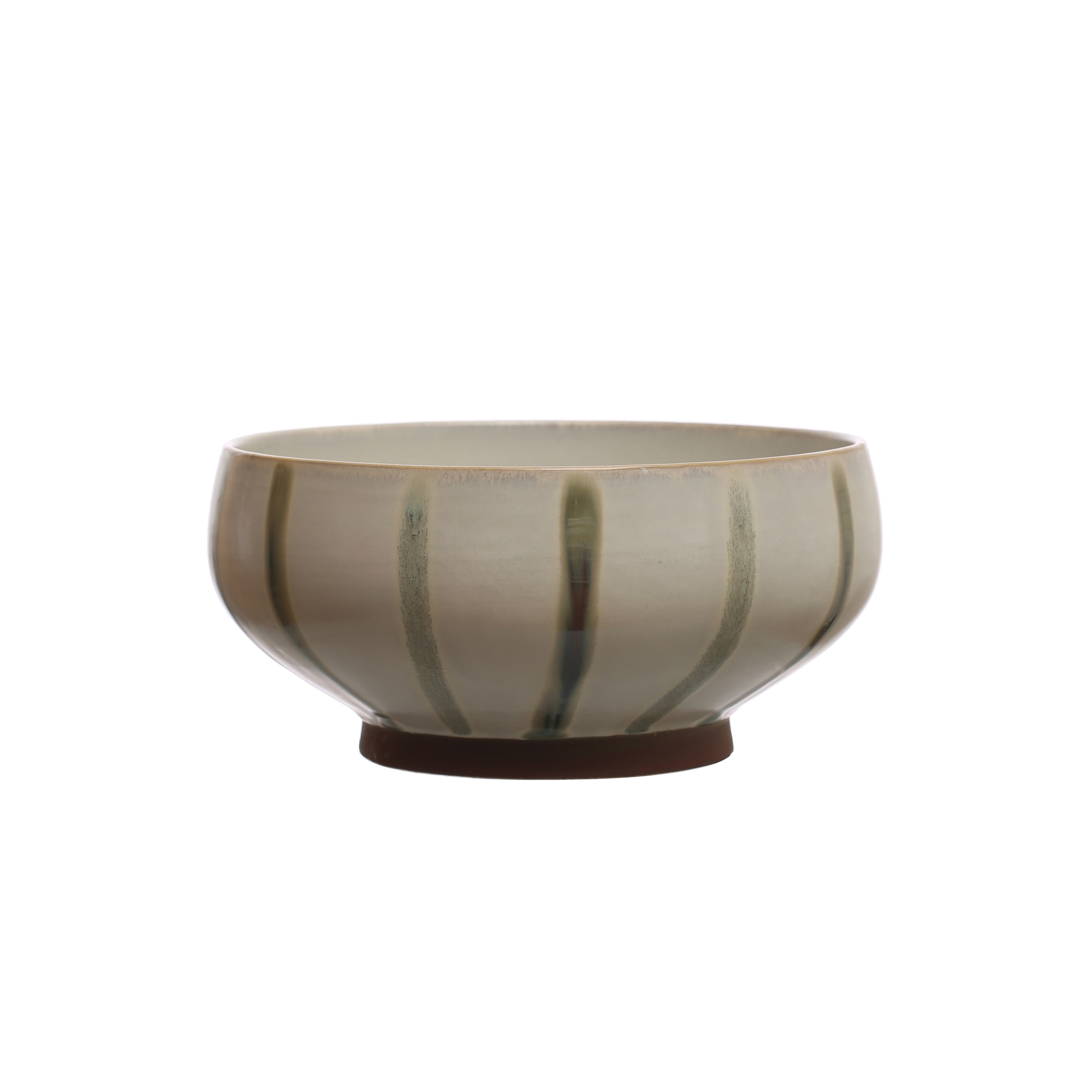 Hand-Painted Stoneware Bowl with Stripes and Reactive Glaze - 10.0"L x 10.0"W x 4.8"H