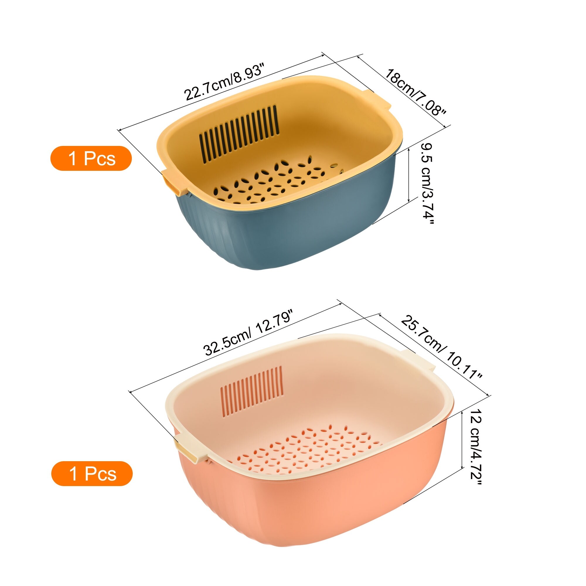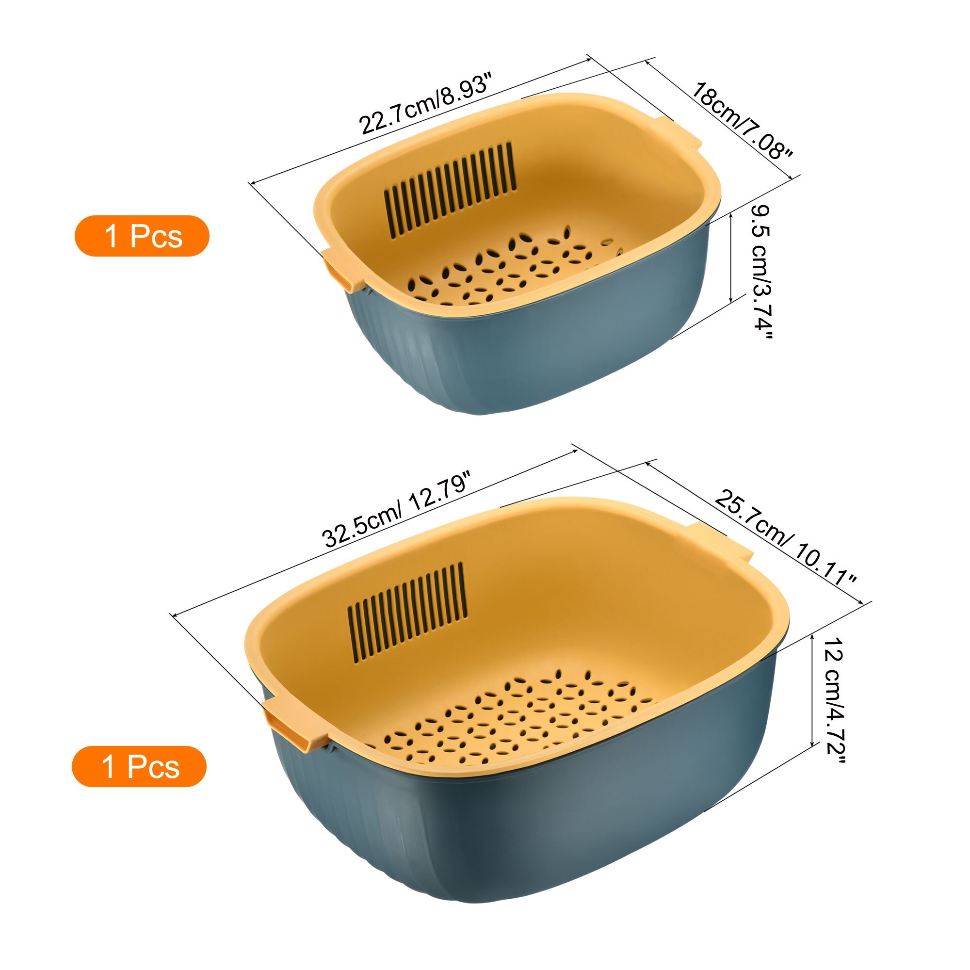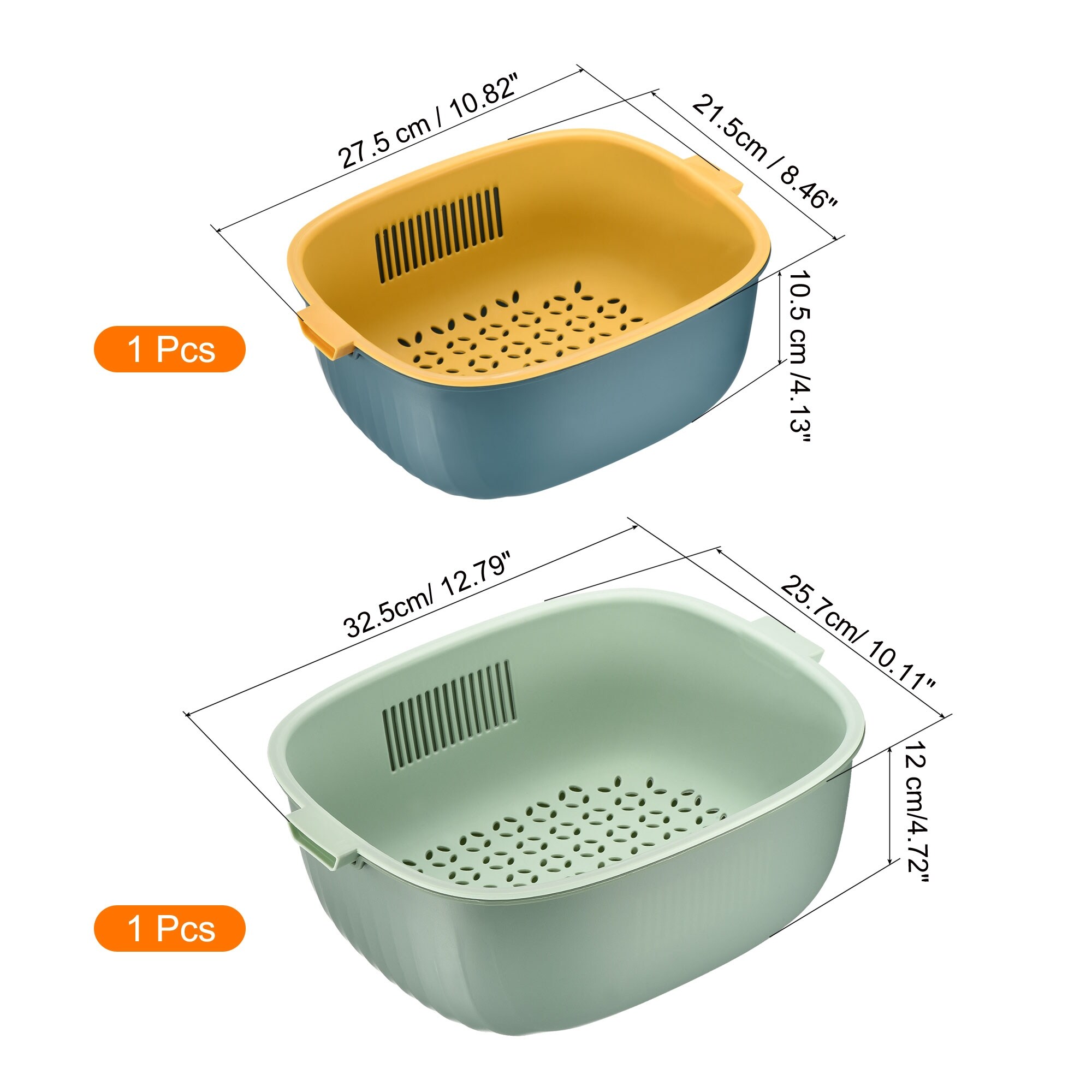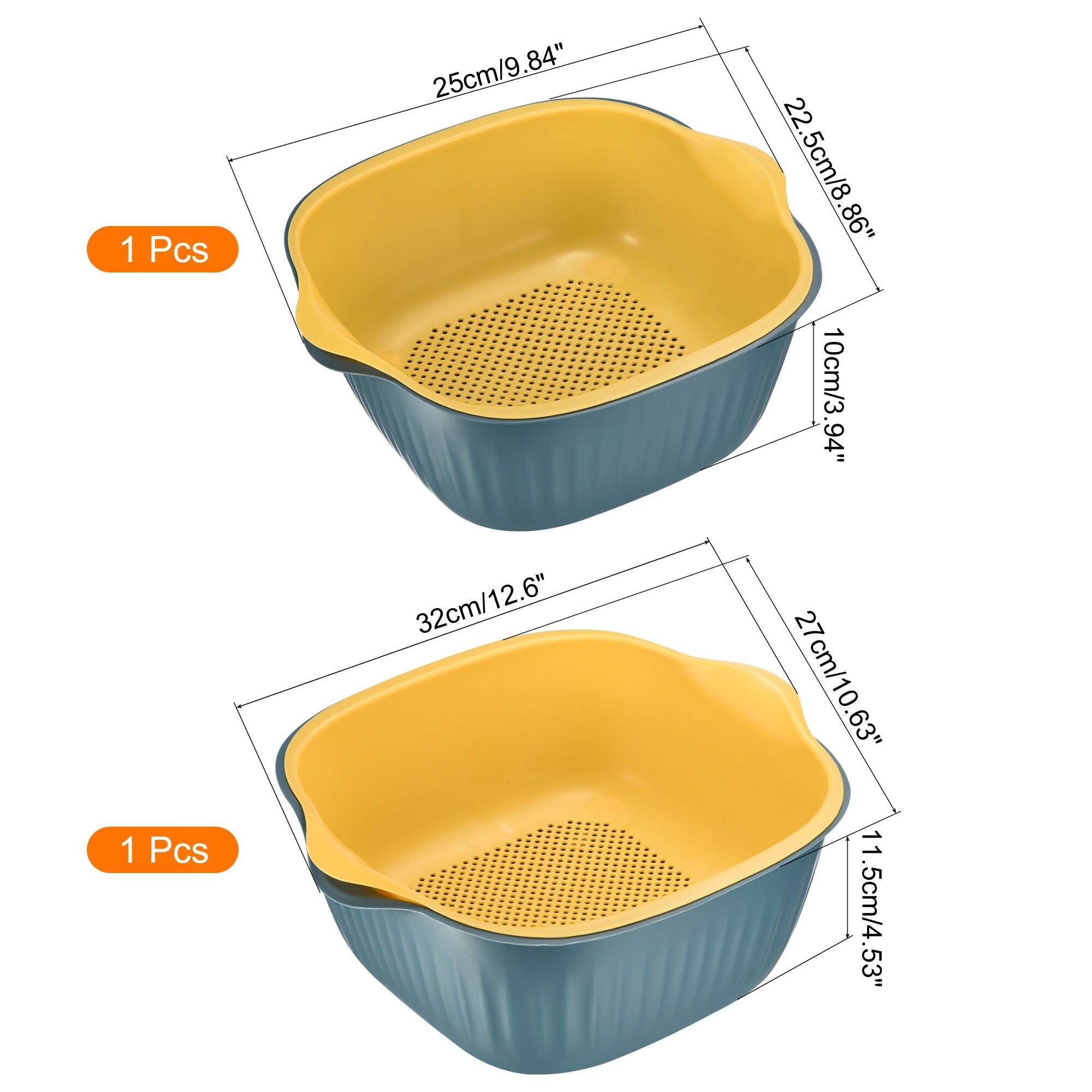 Colanders Strainer Bowl Set 2PCS, Washing Bowl & Strainer Double-layer - 32 x 27 x 11.5 cm,25 x 22.5 x 10 cm